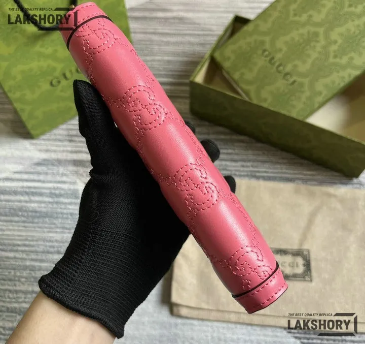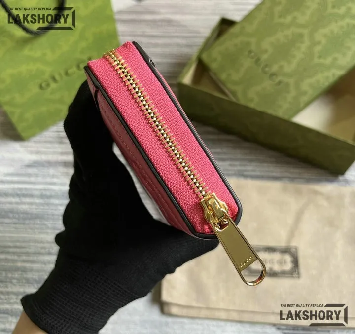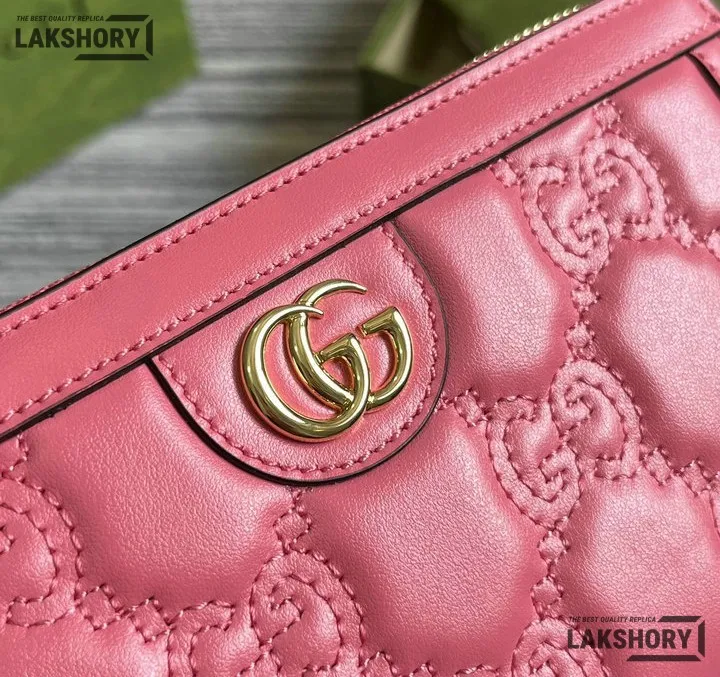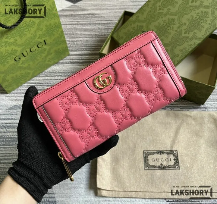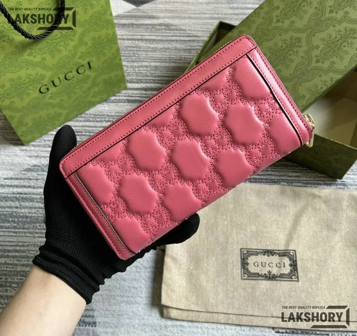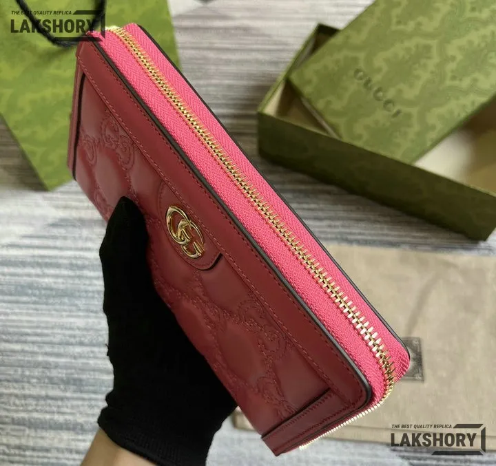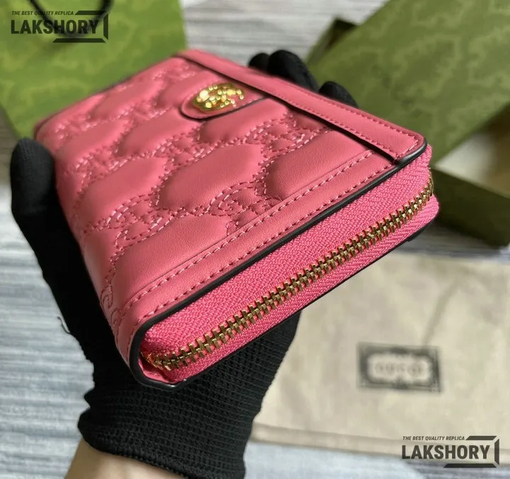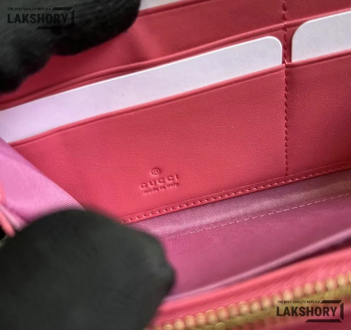 Gucci 1:1 Mirror Replica GG Matelass Zip-around Wallet Pink 19.5CM/7.7IN