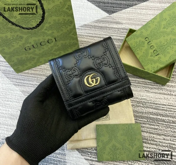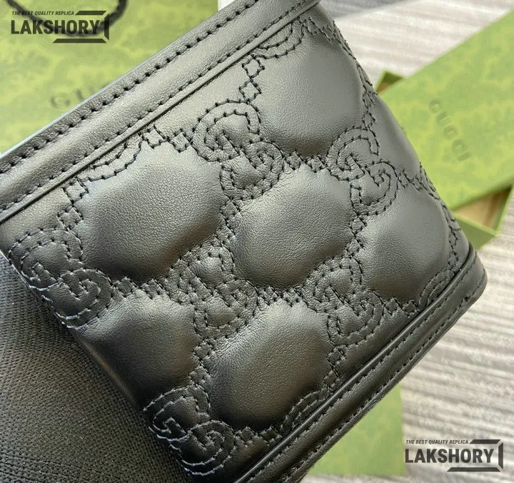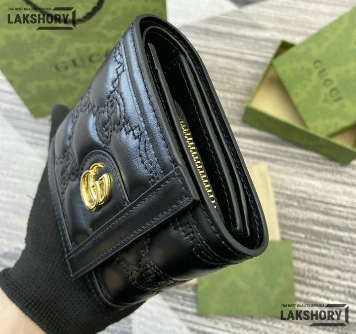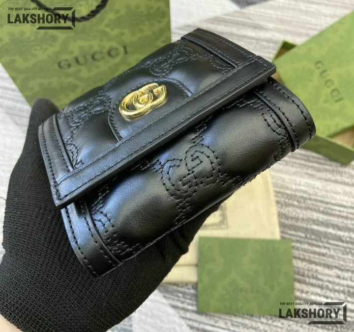 Gucci 1:1 Mirror Replica GG Matelasse Bi-Fold Wallet Black 12CM/4.7IN