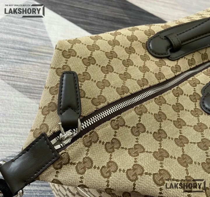 Gucci 1:1 Mirror Replica GG Medium Duffle Bag Beige Dark Brown 44CM/17.3IN