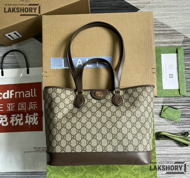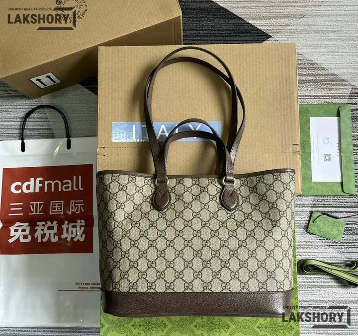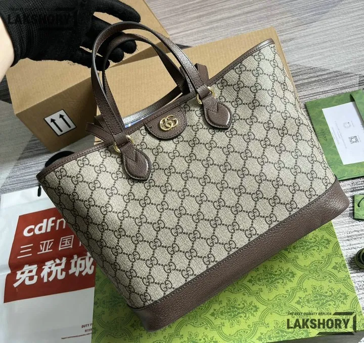 Gucci 1:1 Mirror Replica GG Medium Ophidia Tote Bag Beige Ebony 31CM/12.2IN