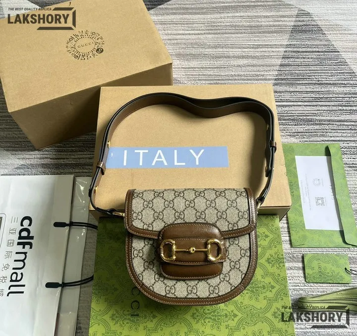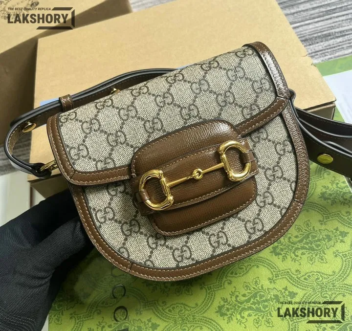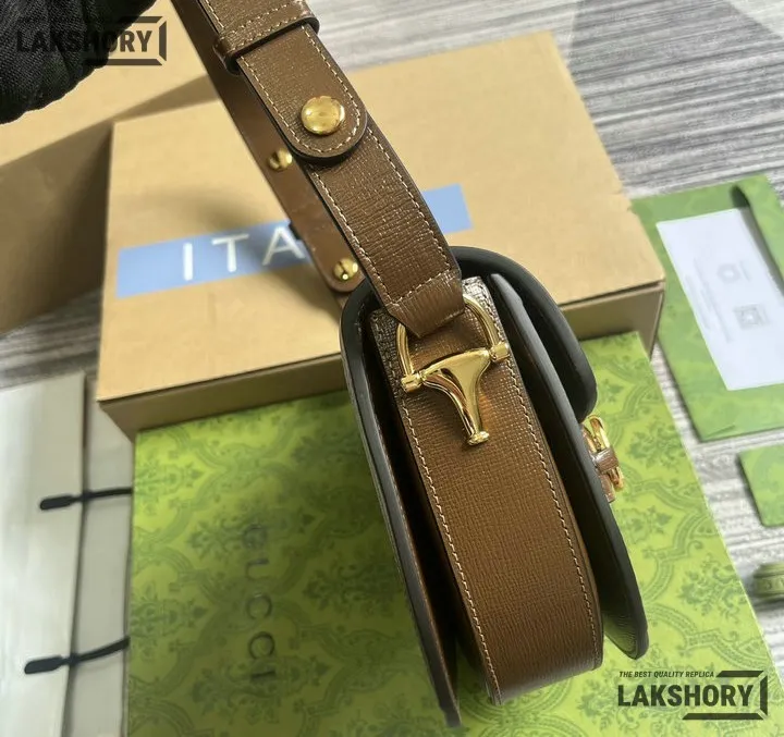 Gucci 1:1 Mirror Replica GG Mini Horsebit 1955 Rounded Beige Brown 18CM/7.1IN