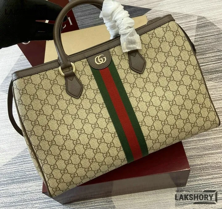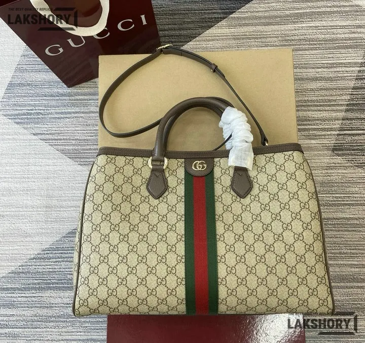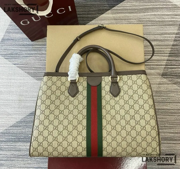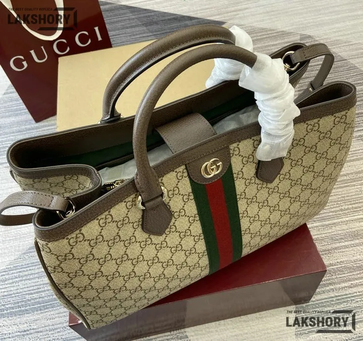 Gucci 1:1 Mirror Replica GG Ophidia Large Tote Beige & Brown 39CM/15.4IN