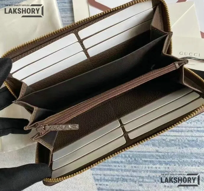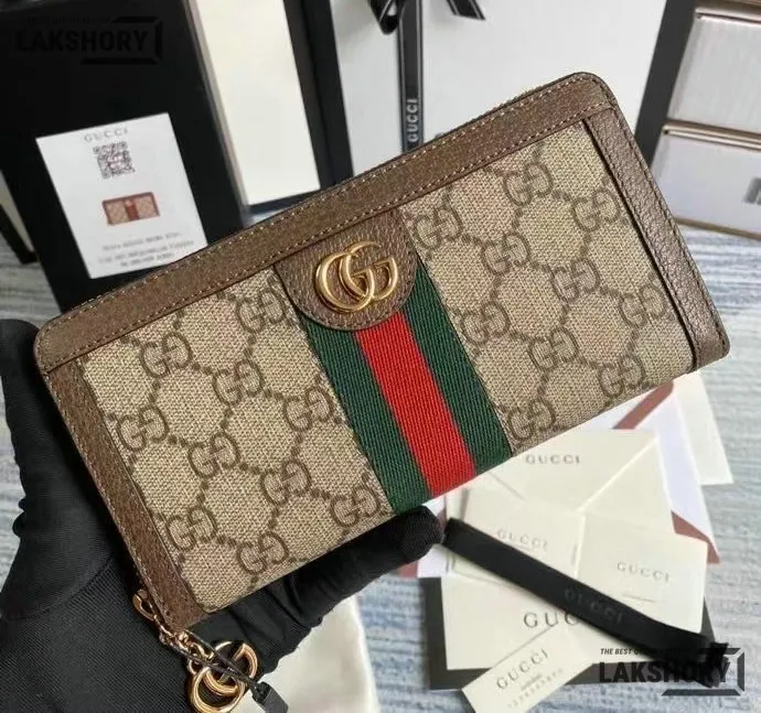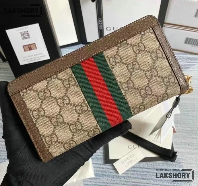 Gucci 1:1 Mirror Replica GG Ophidia Zip Around Wallet Beige Brown 19.5CM/7.7IN