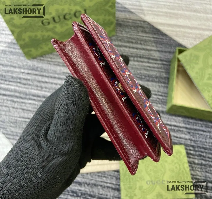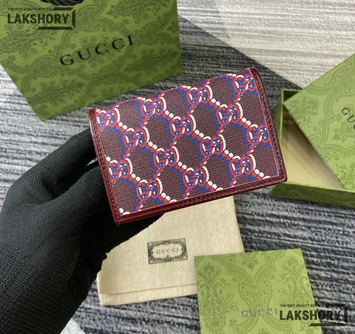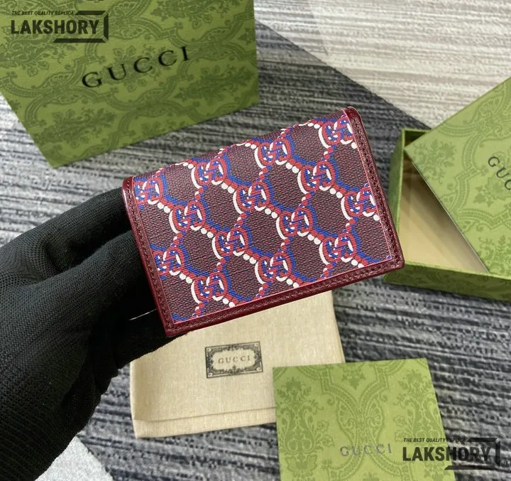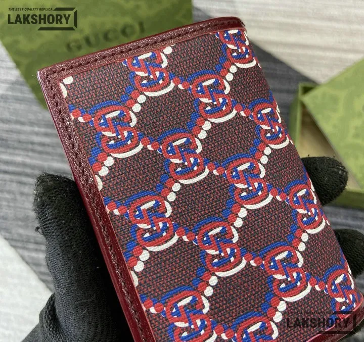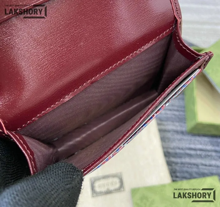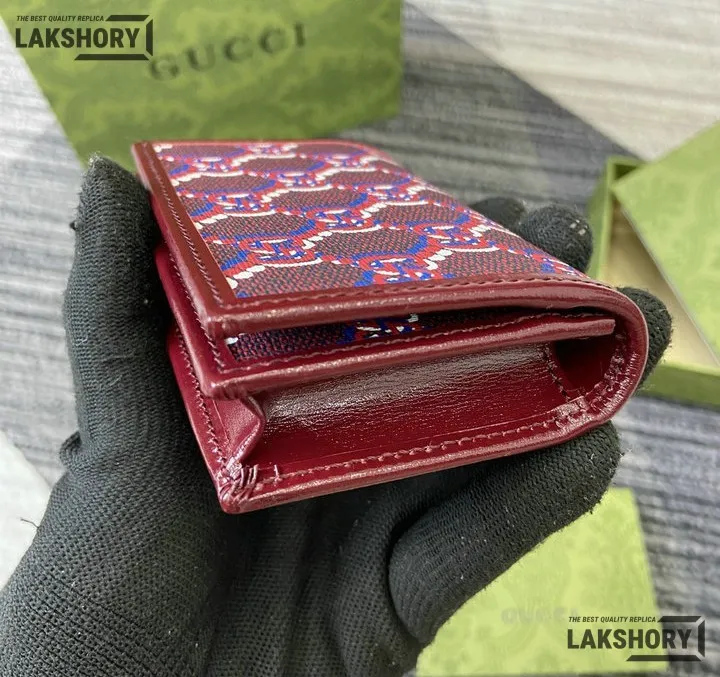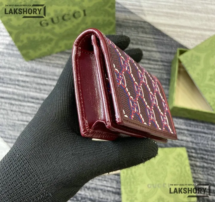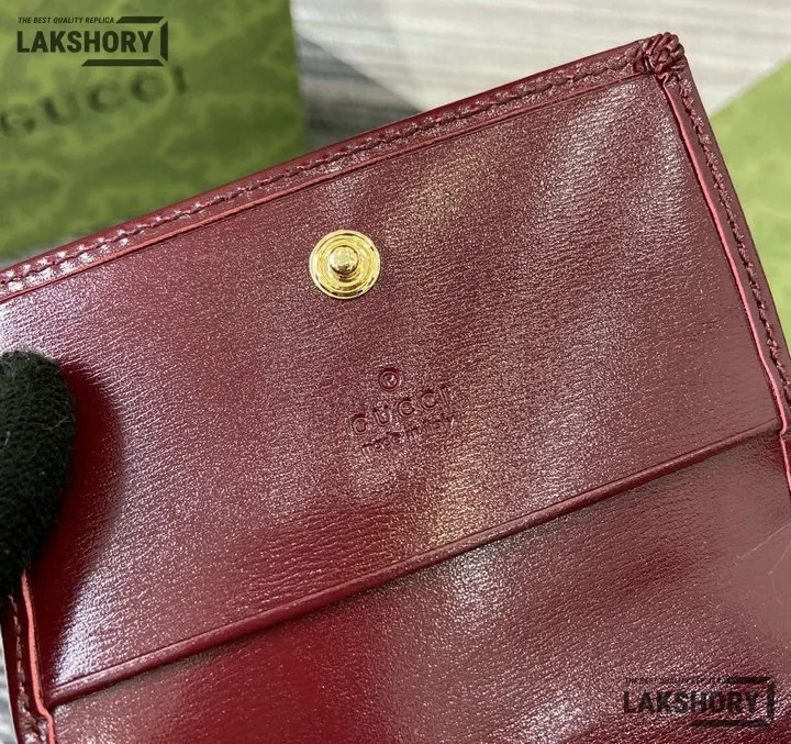 Gucci 1:1 Mirror Replica GG Shadow Mini Zip Flap Wallet Burgundy 10.5CM/4.1IN