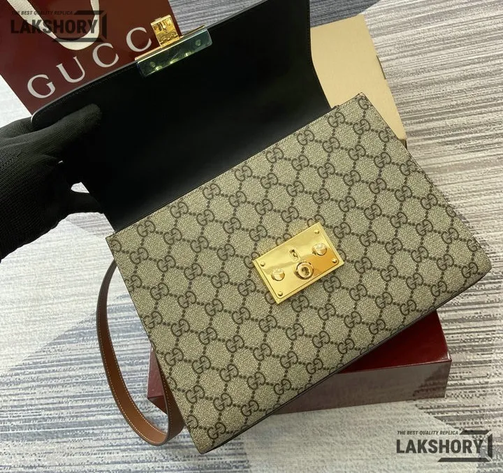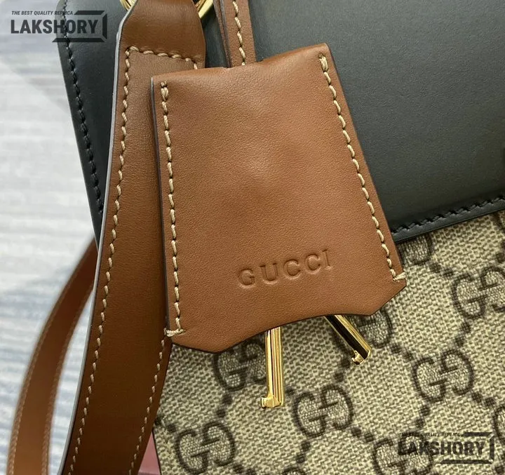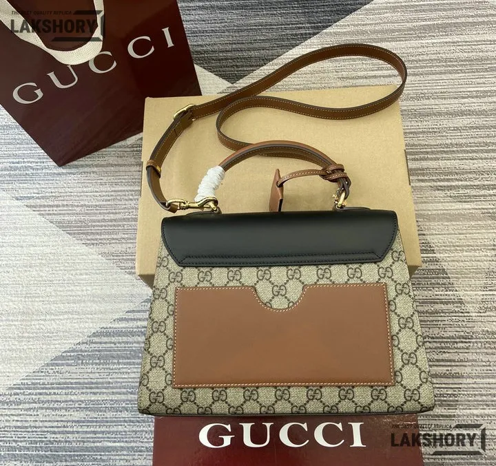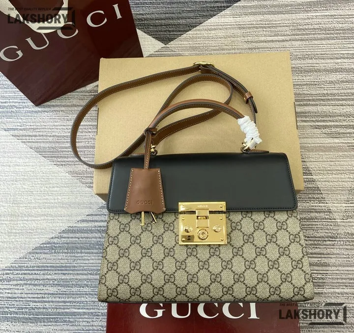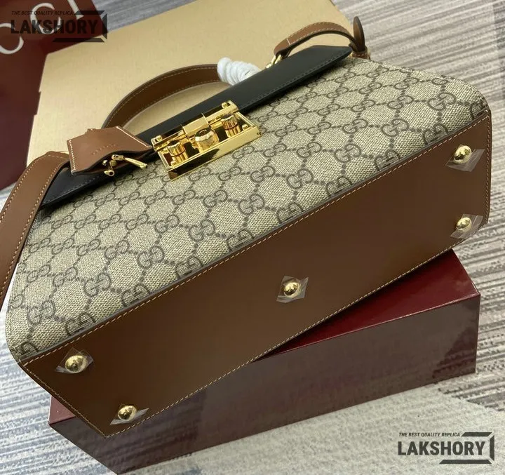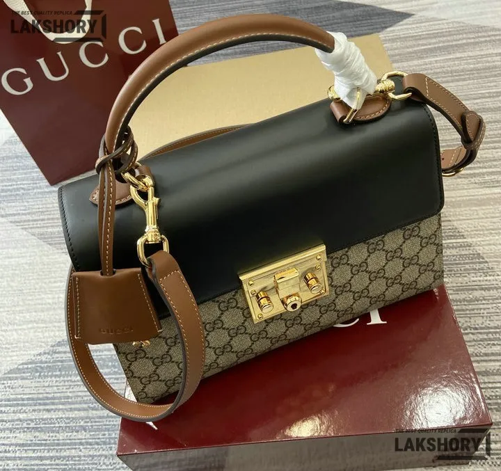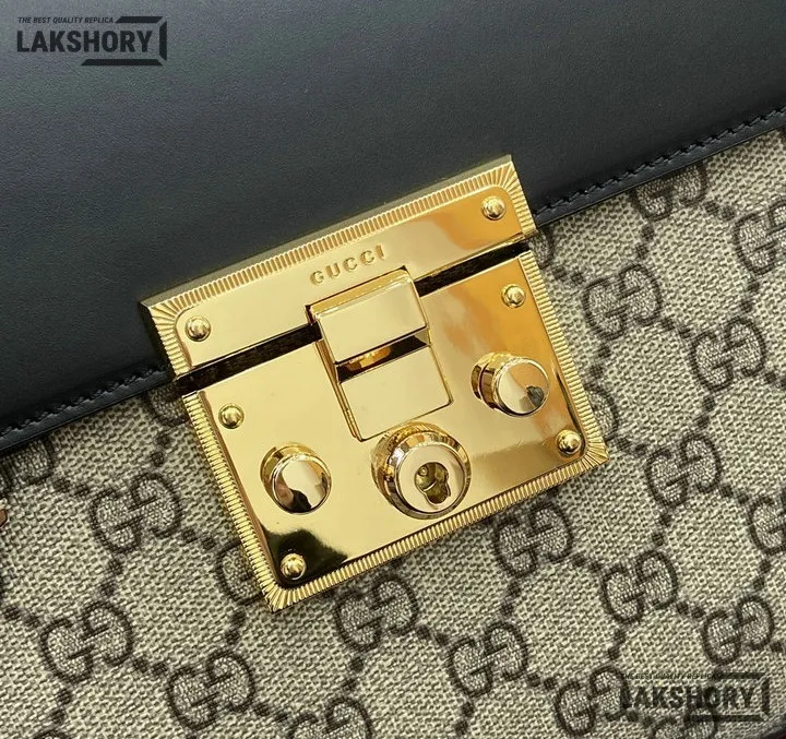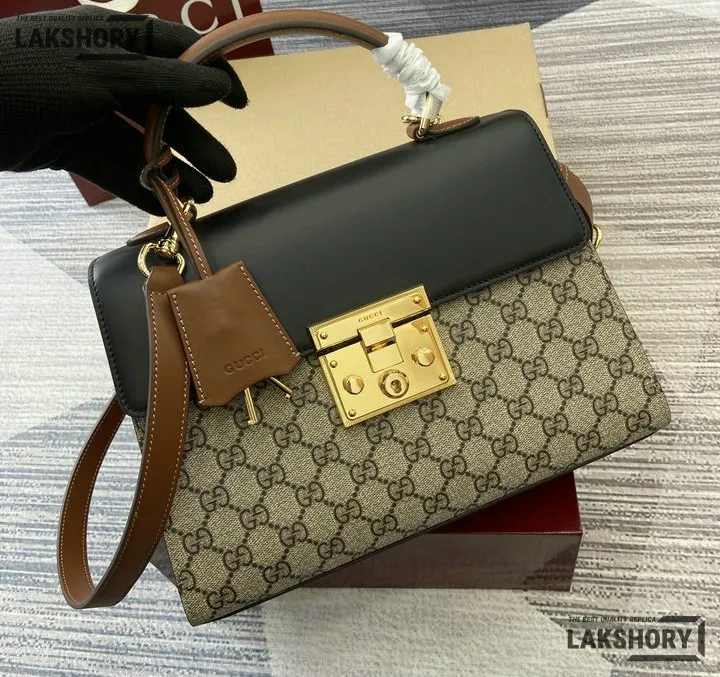 Gucci 1:1 Mirror Replica GG Small Padlock Top Handle Beige Black 28CM/11IN