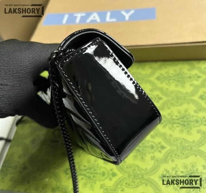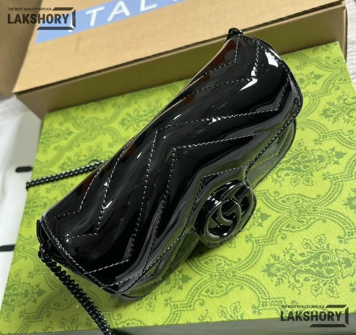 Gucci 1:1 Mirror Replica GG Super Mini Marmont Patent Bag Black 16.5CM/6.5IN