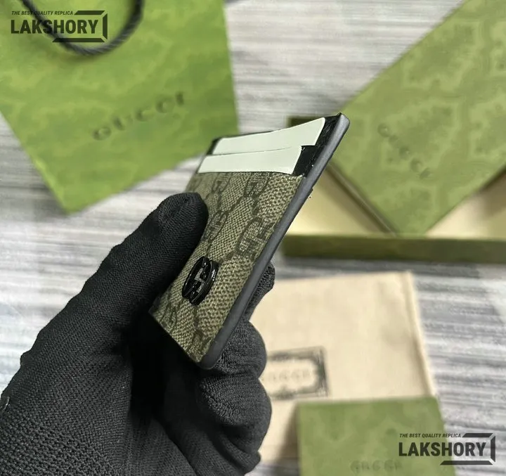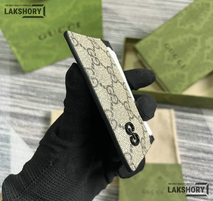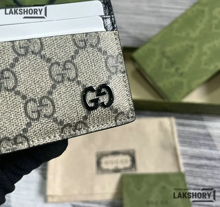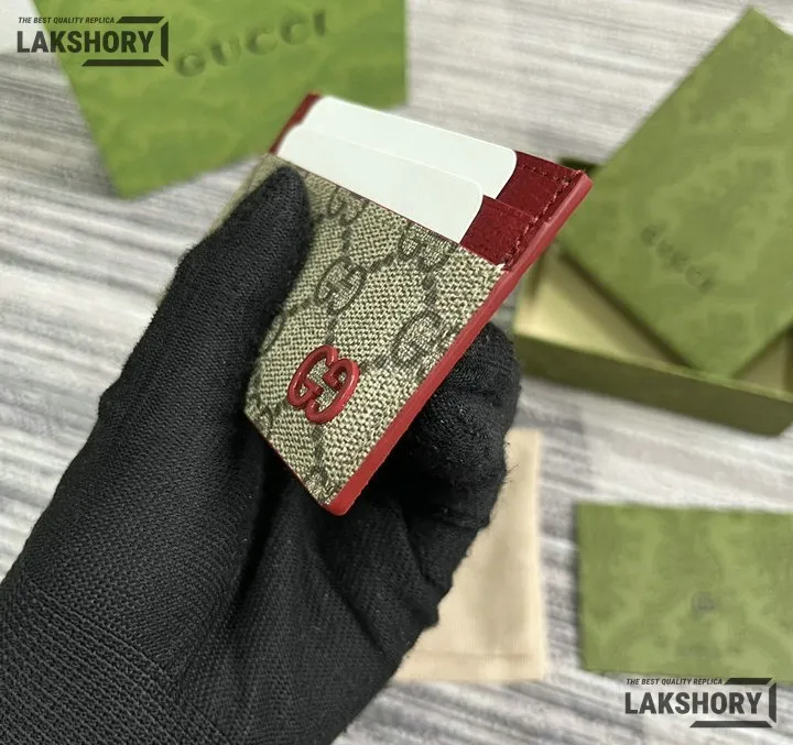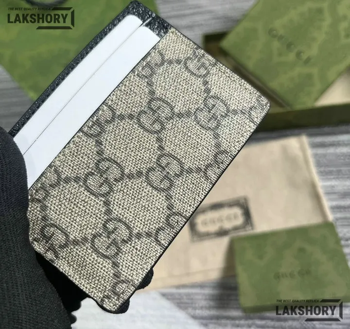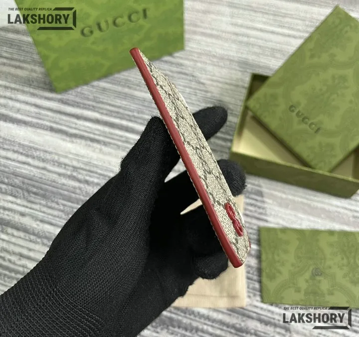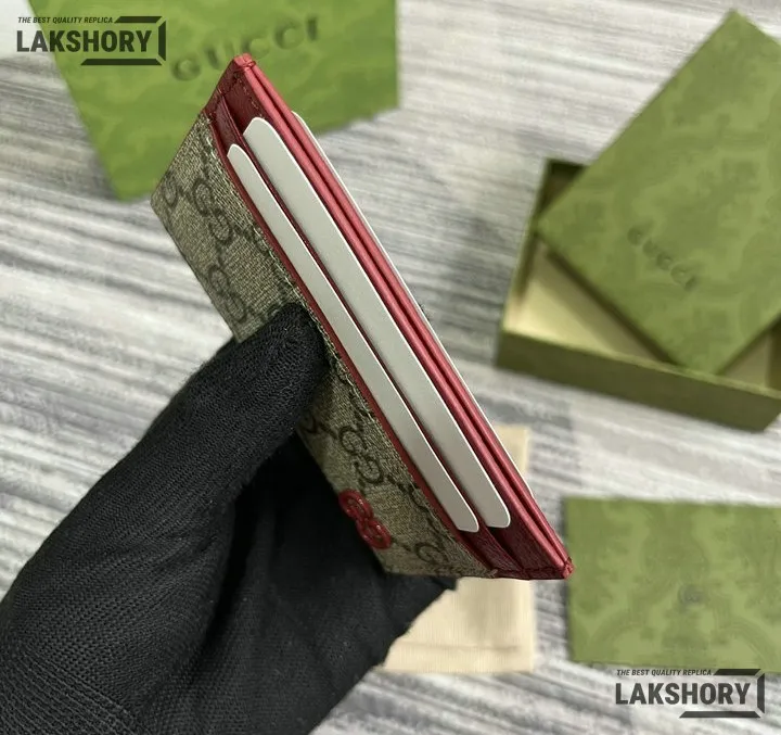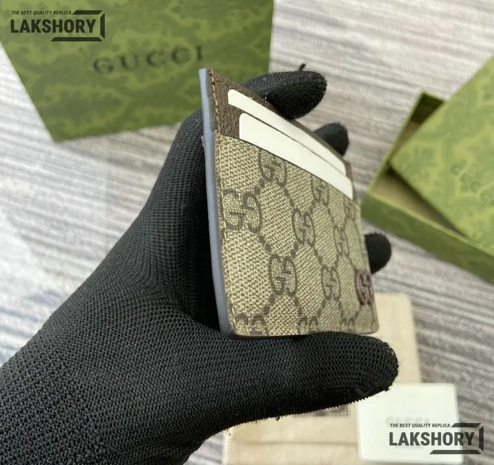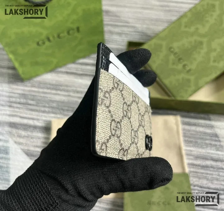 Gucci 1:1 Mirror Replica GG Supreme Bi-color GG Card Case 7CM/2.8IN