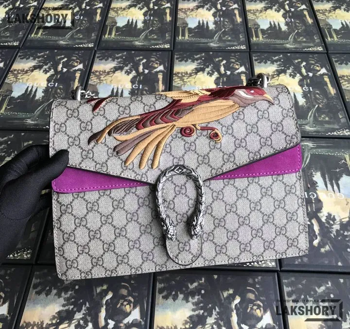 Gucci 1:1 Mirror Replica GG Supreme Bird Medium Dionysus Purple 30CM/11.8IN