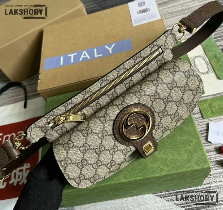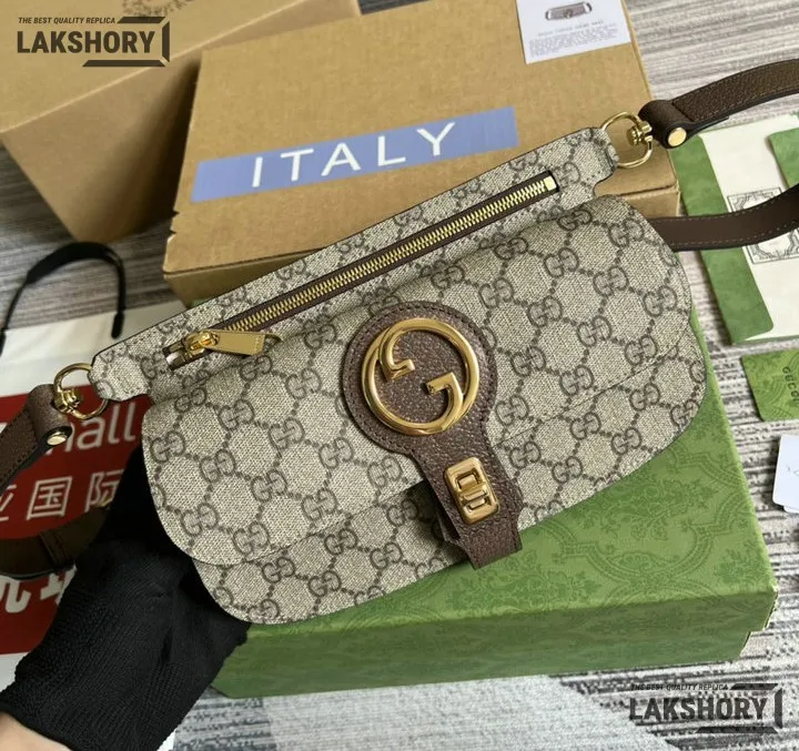 Gucci 1:1 Mirror Replica GG Supreme Blondie Belt Bag Beige Ebony 24CM/9.4IN