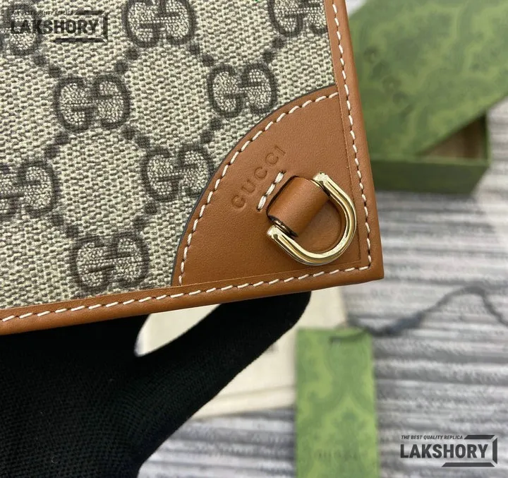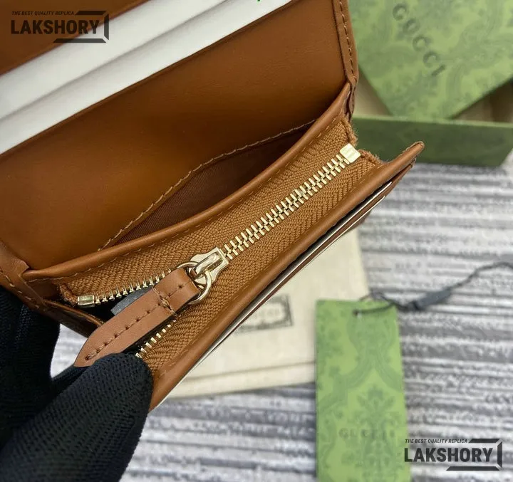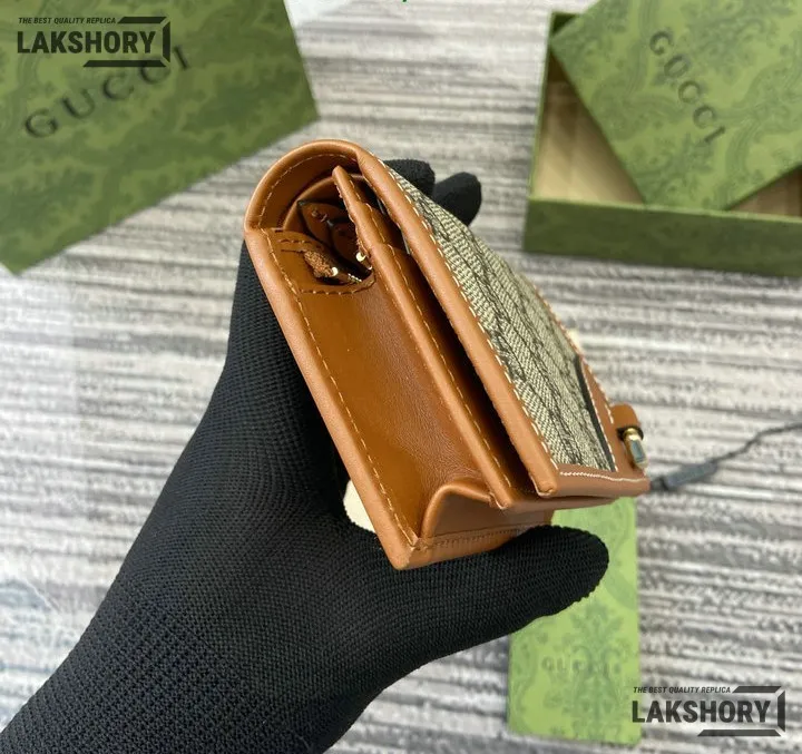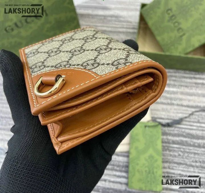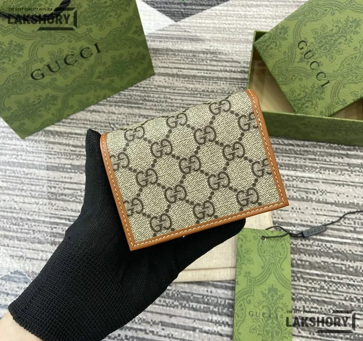 Gucci 1:1 Mirror Replica GG Supreme Emblem Mini Wallet Beige Brown 11CM/4.3IN