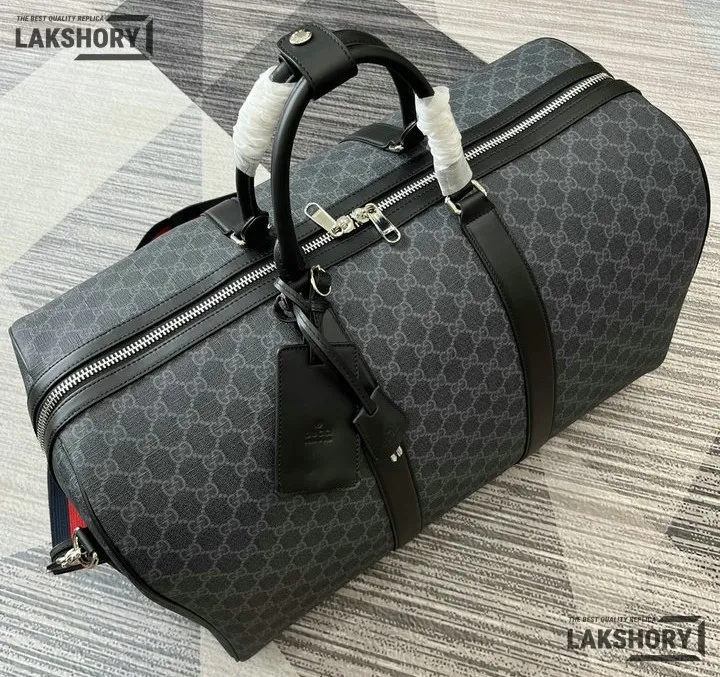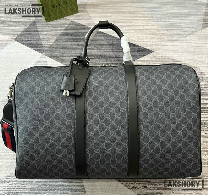 Gucci 1:1 Mirror Replica GG Supreme Large Duffle Bag Black 52CM/20.5IN