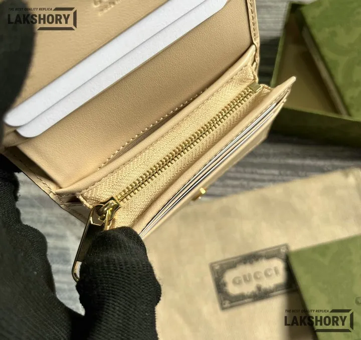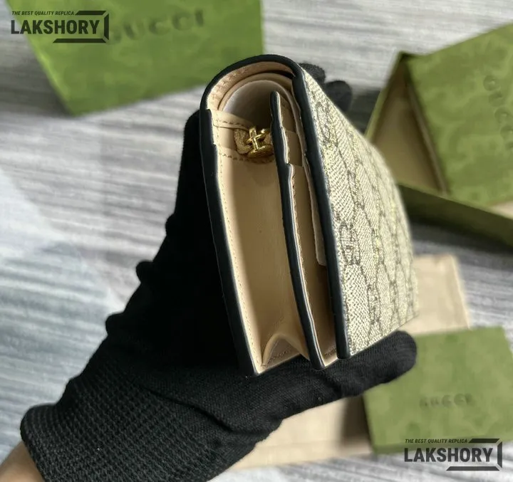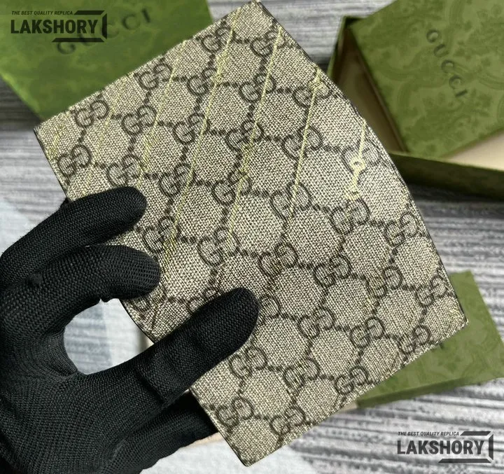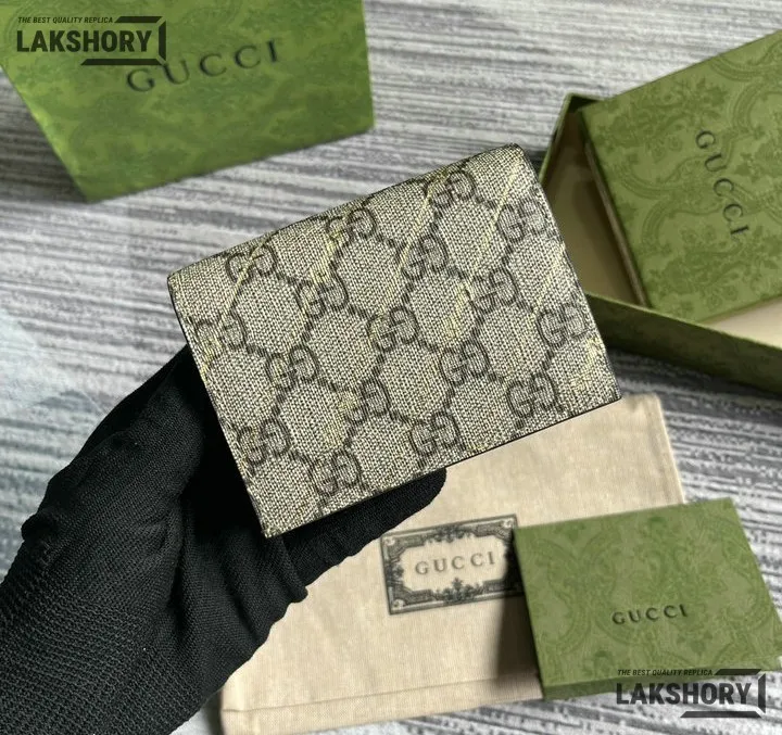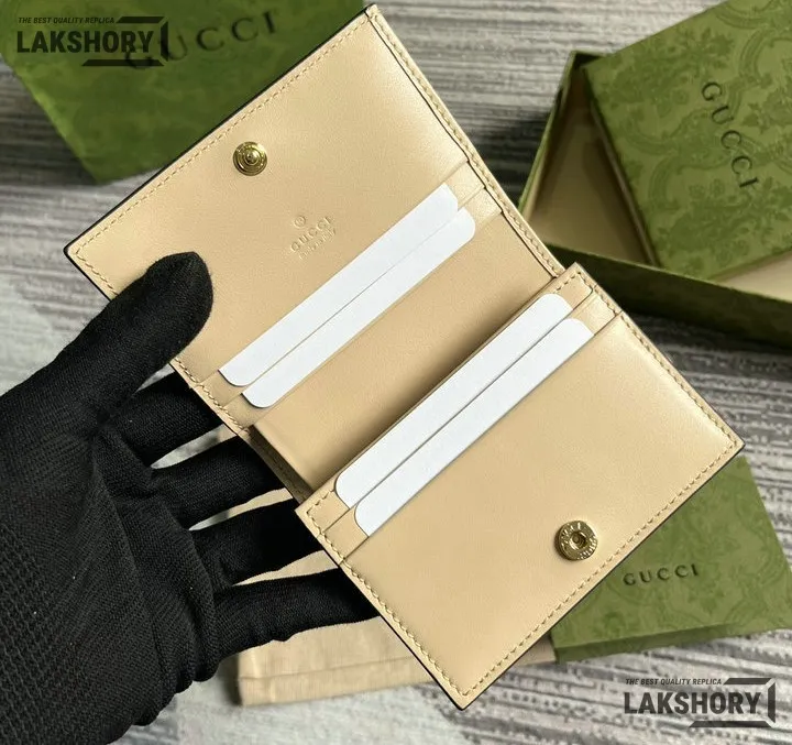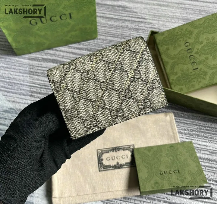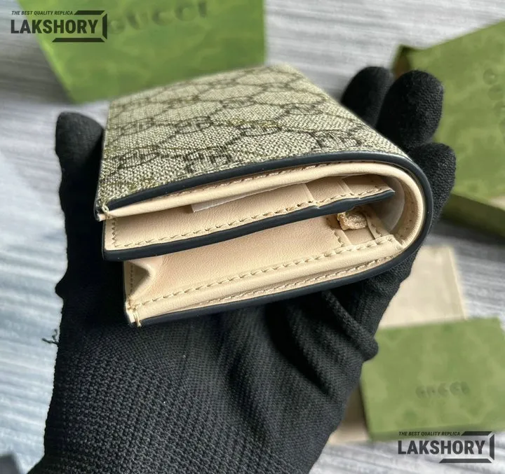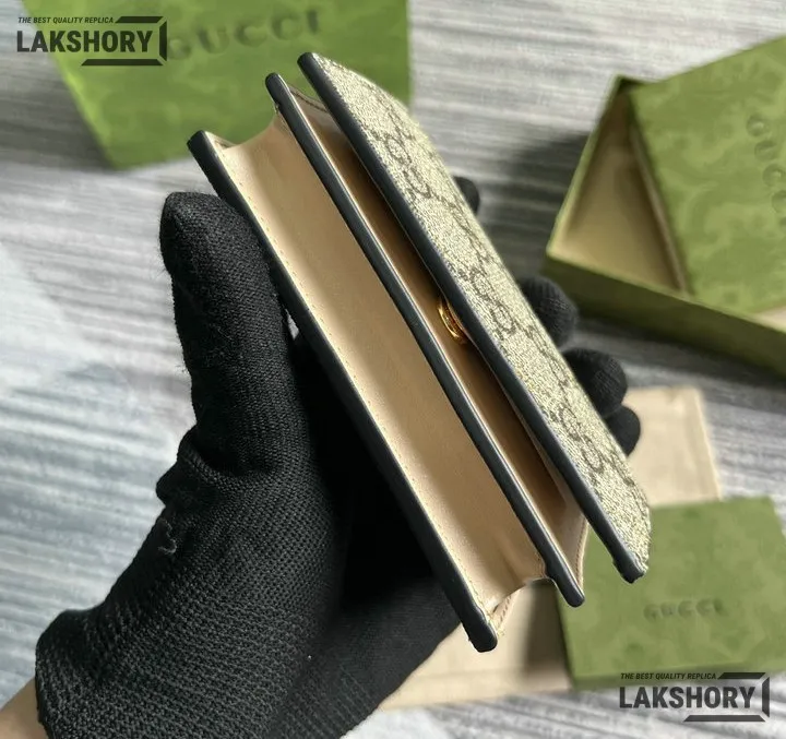 Gucci 1:1 Mirror Replica GG Supreme Monogram Card Case Beige 11CM/4.3IN