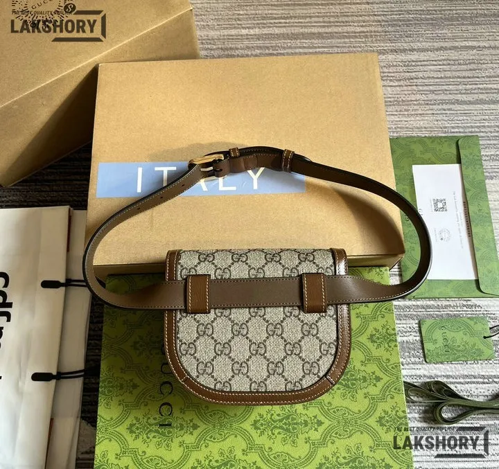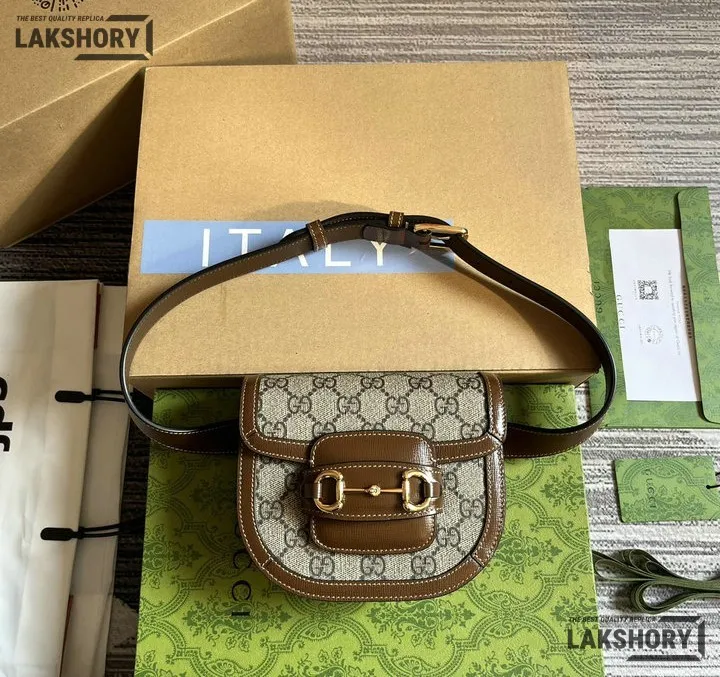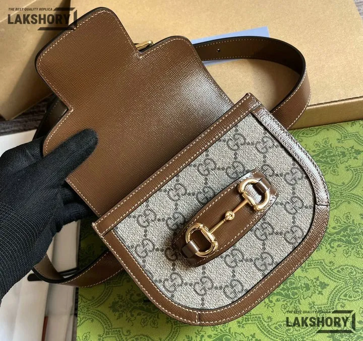 Gucci 1:1 Mirror Replica GG Supreme Monogram Horsebit 1955 Beige Brown 16CM/6.3IN