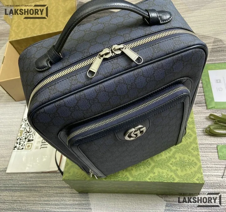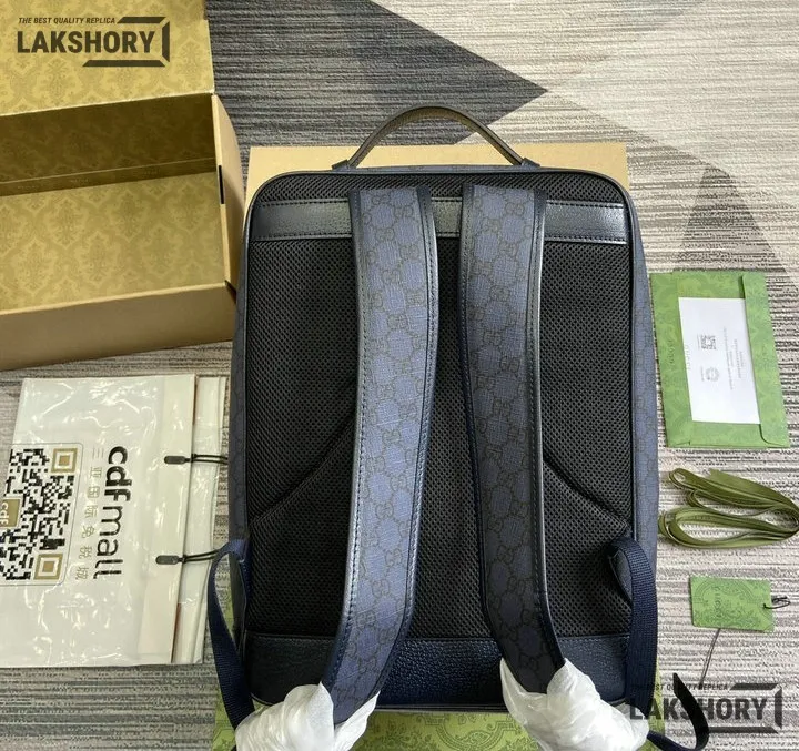 Gucci 1:1 Mirror Replica GG Supreme Monogram Ophidia Backpack Navy 40CM/15.7IN