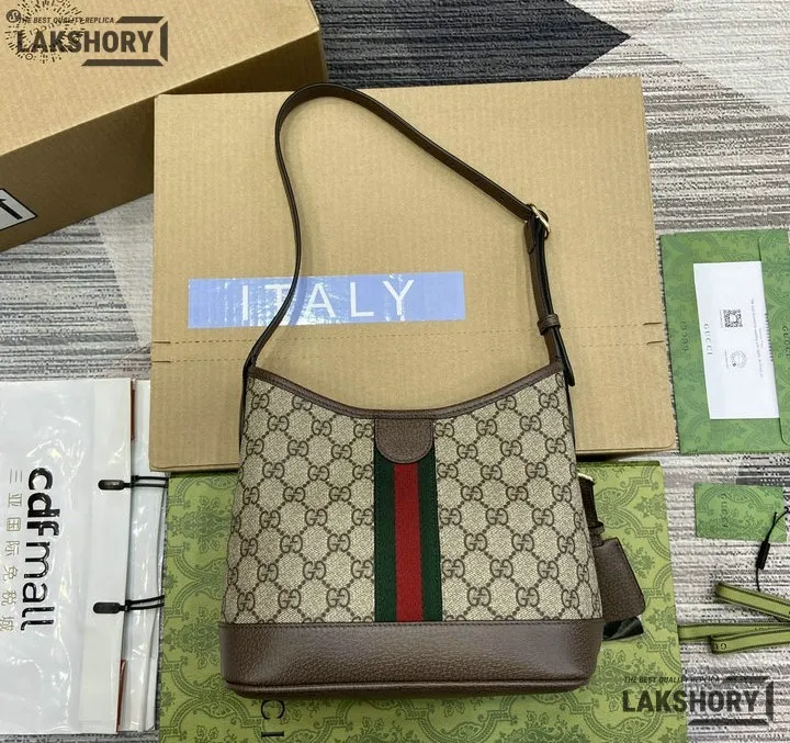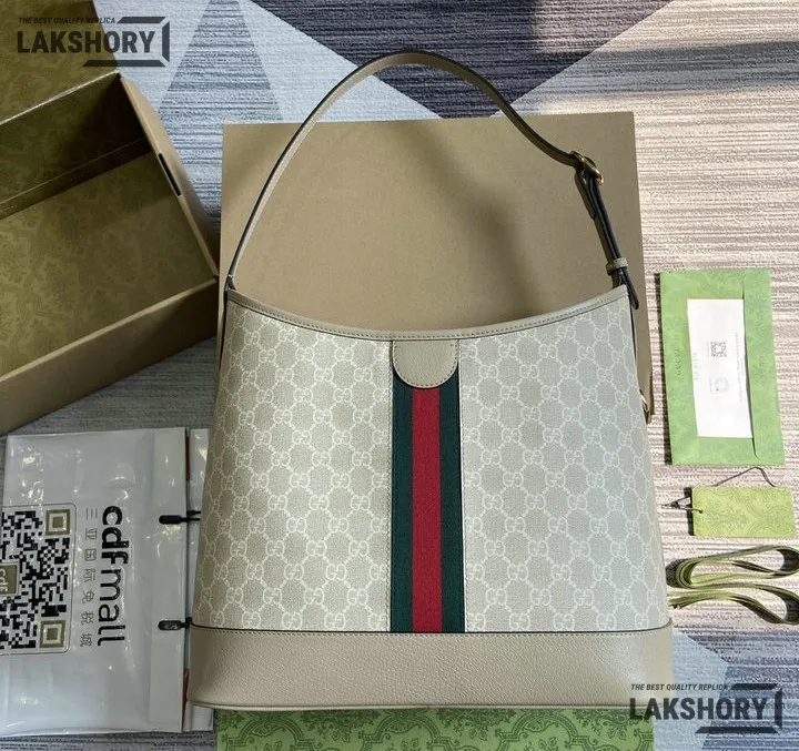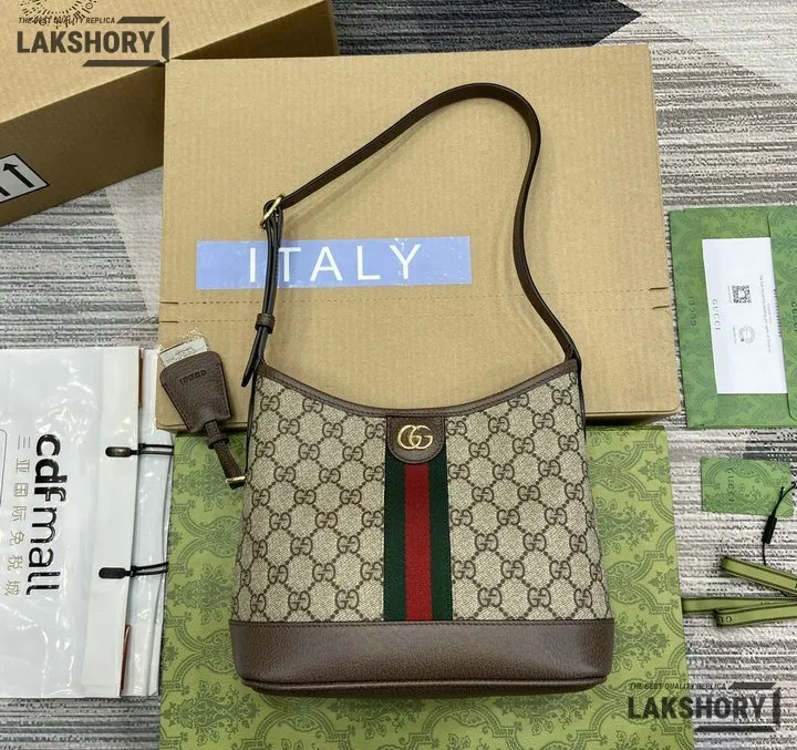 Gucci 1:1 Mirror Replica GG Supreme Monogram Web Ophidia Shoulder Bag