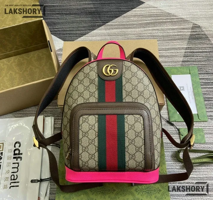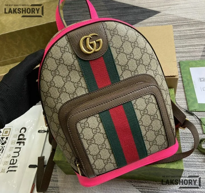 Gucci 1:1 Mirror Replica GG Supreme Small Ophidia Backpack Fuchsia 29CM/11.4IN