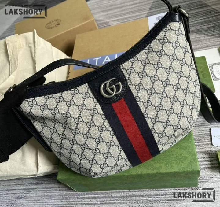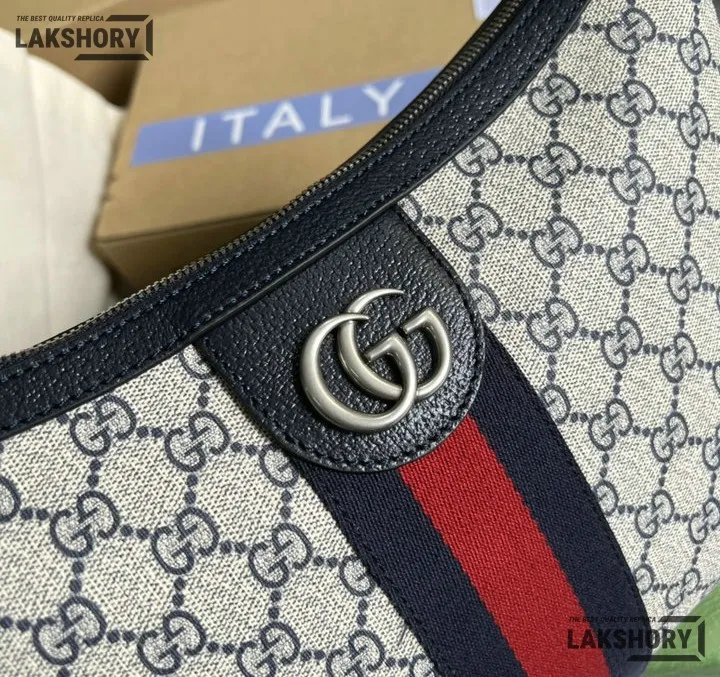 Gucci 1:1 Mirror Replica GG Supreme Small Ophidia Hobo Beige Blue 30CM/11.8IN