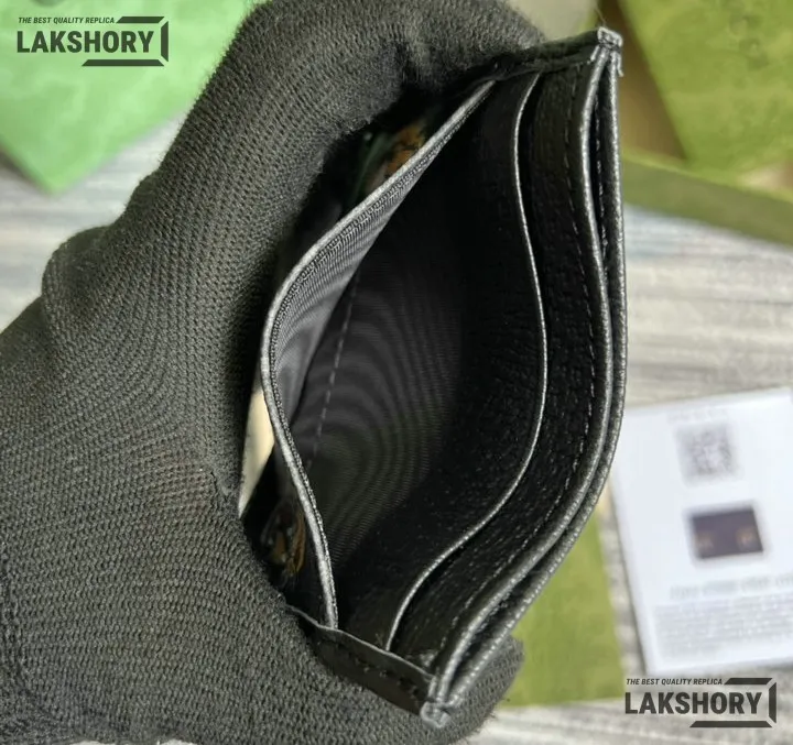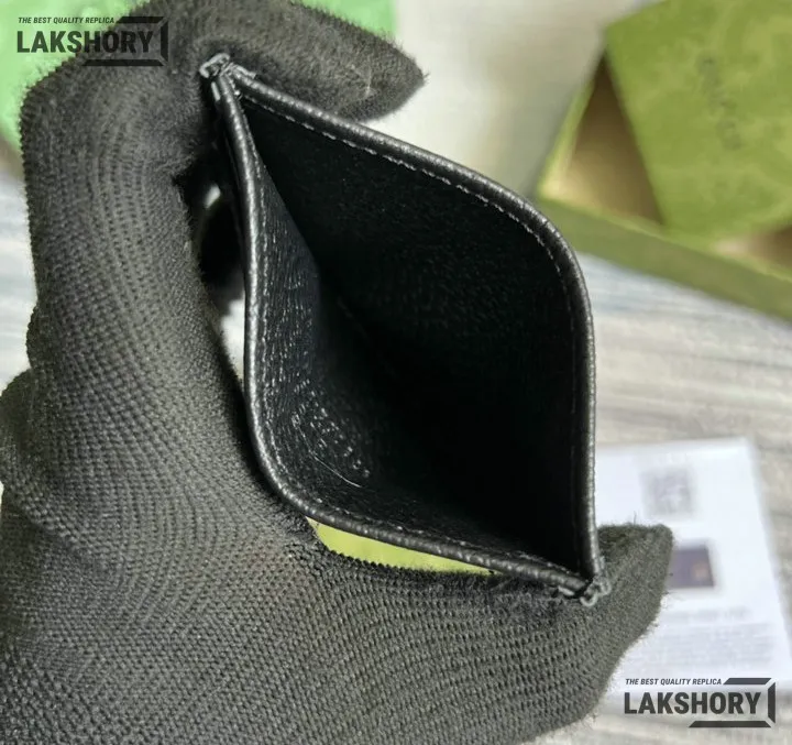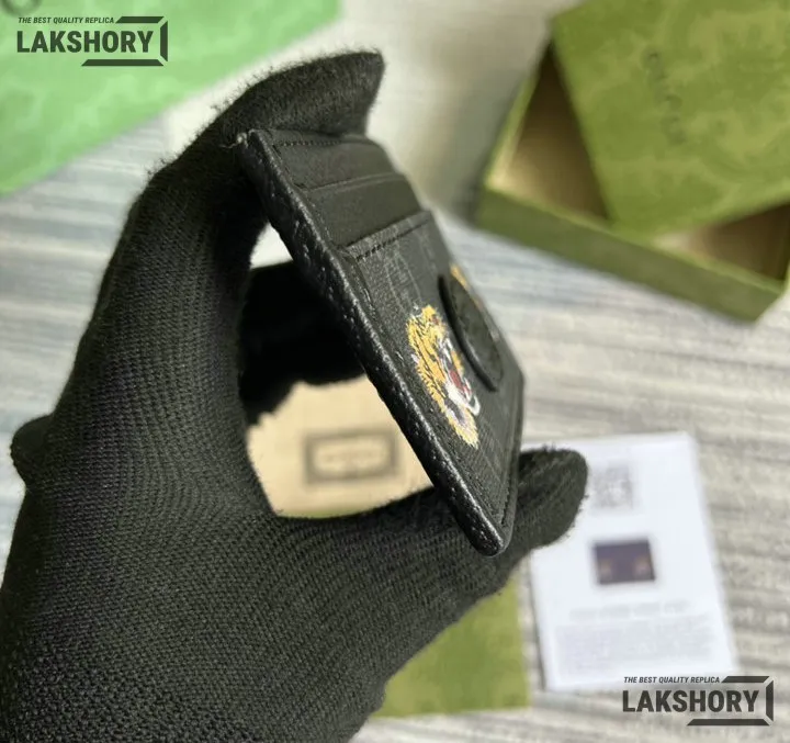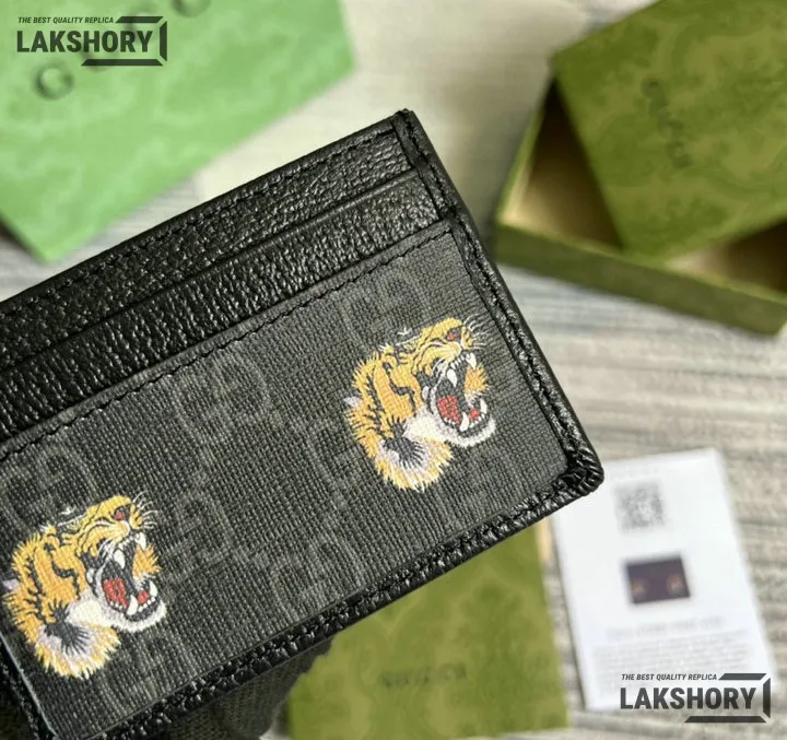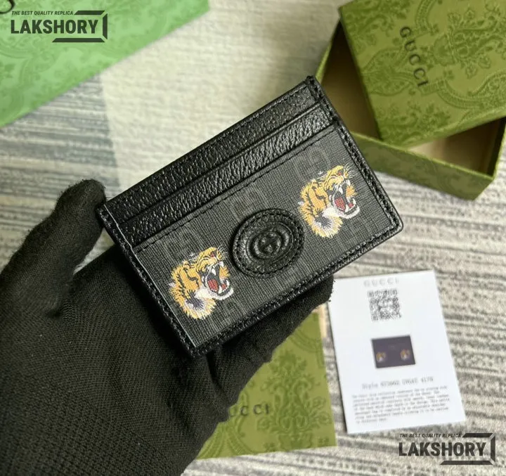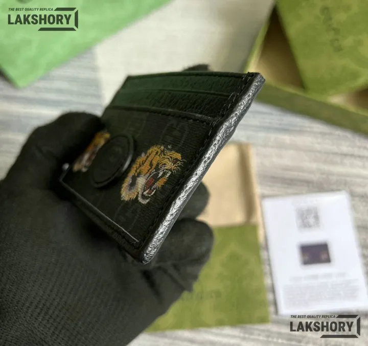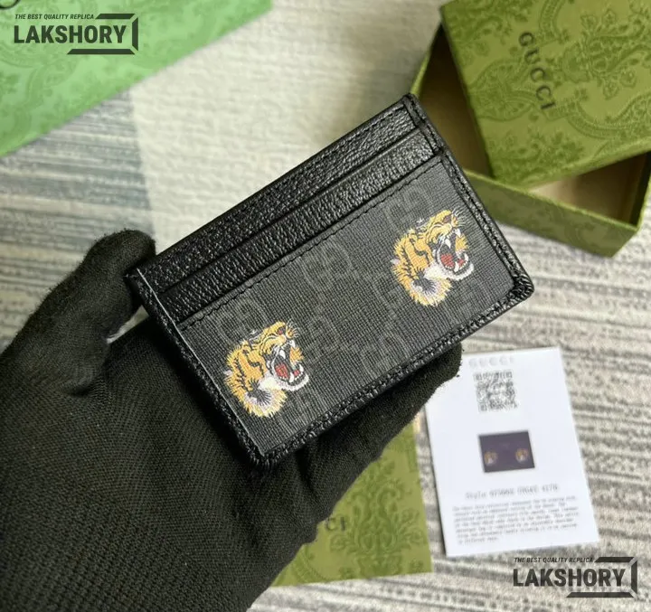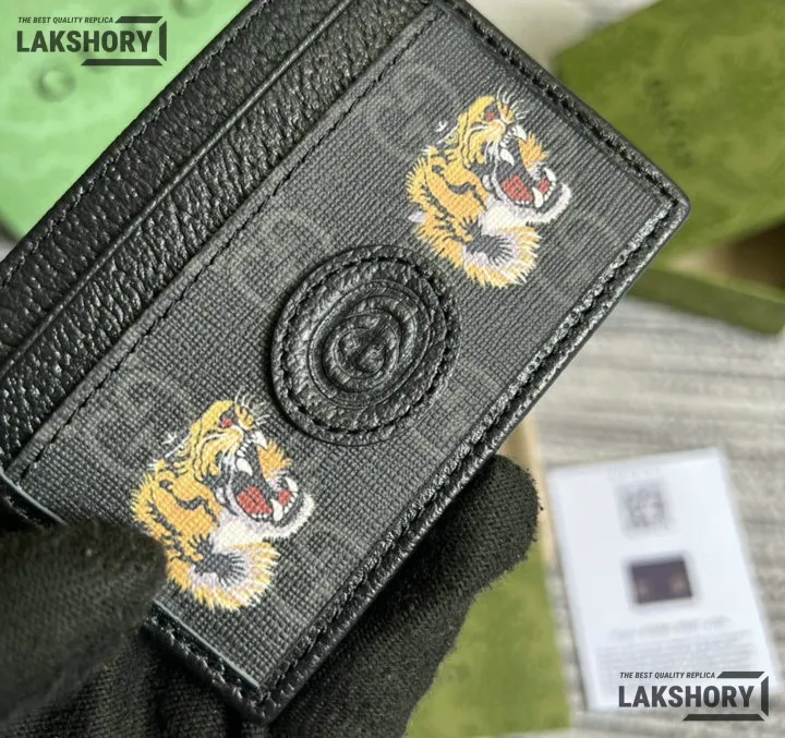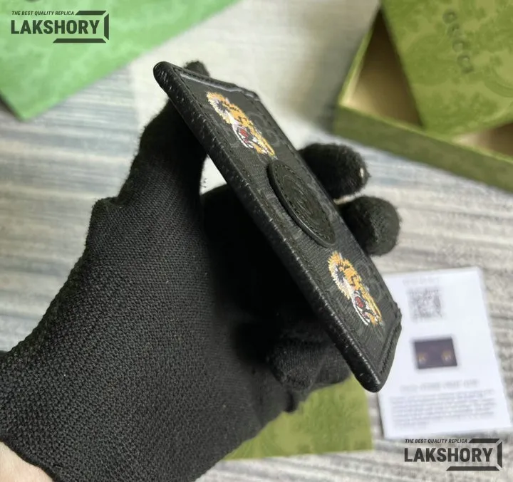 Gucci 1:1 Mirror Replica GG Tiger Card Holder Black 7CM/2.8IN