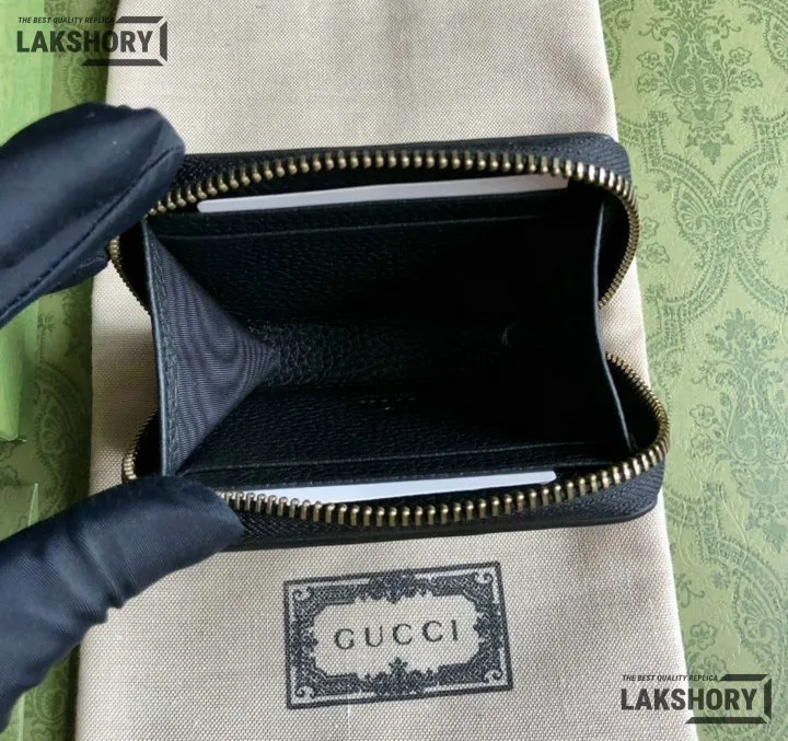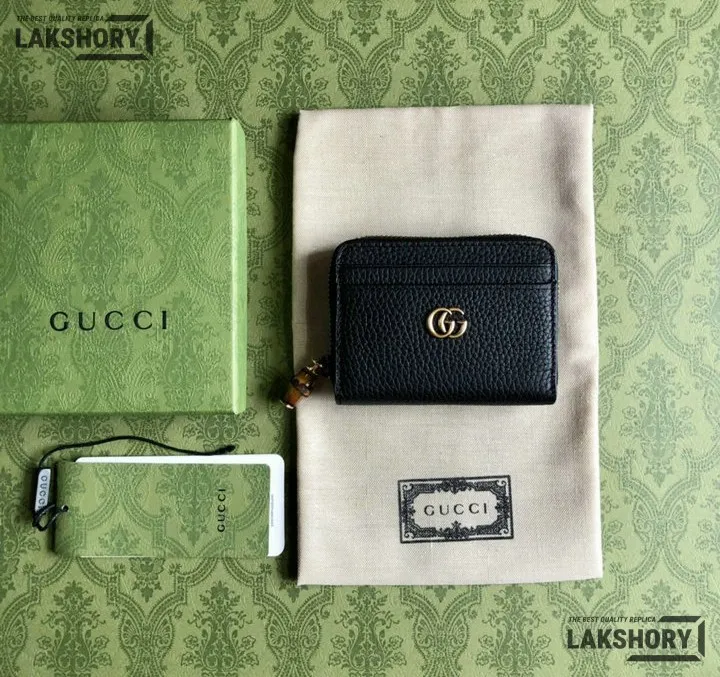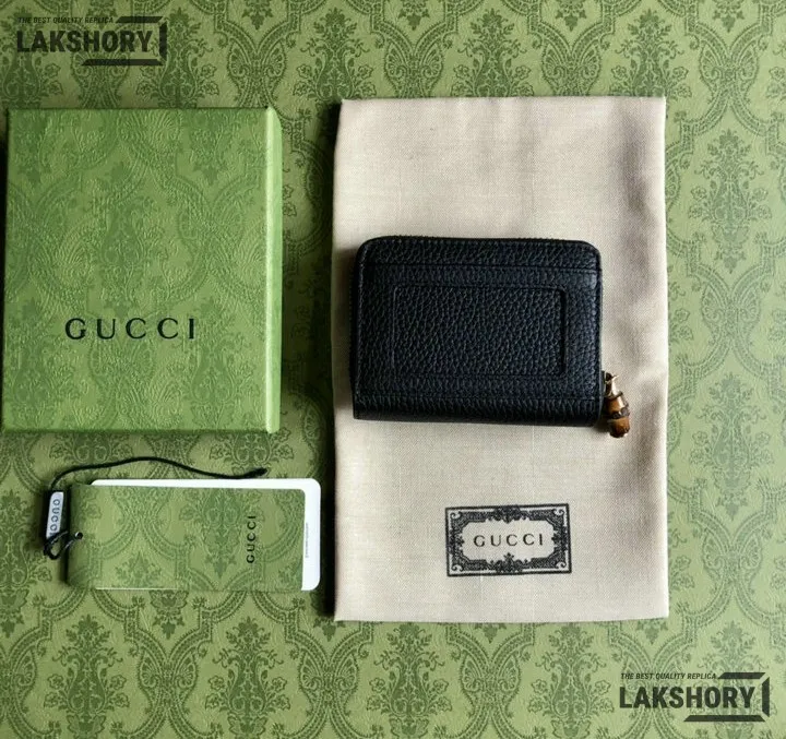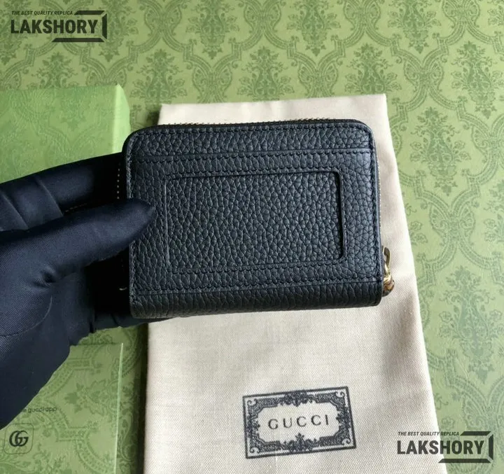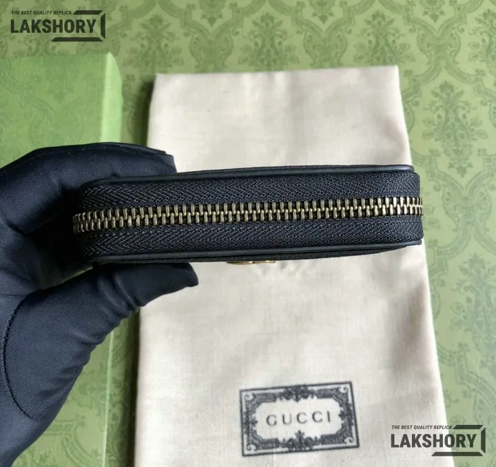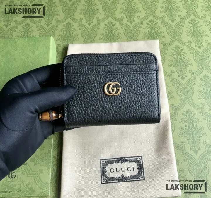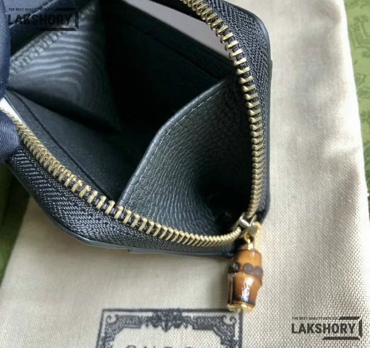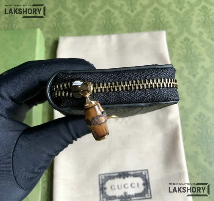 Gucci 1:1 Mirror Replica GG Zip Card Case w/ Bamboo Black 11.5CM/4.5IN