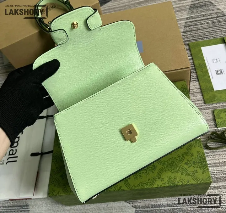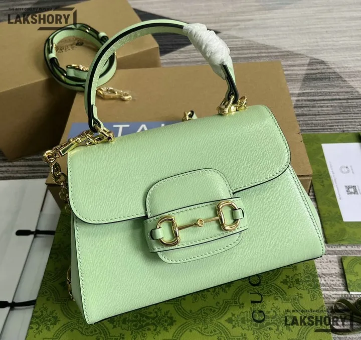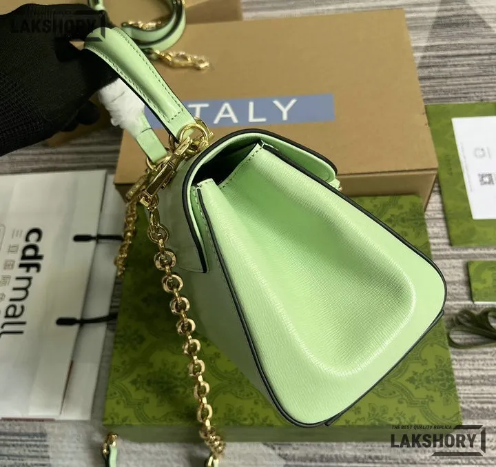 Gucci 1:1 Mirror Replica Glazed Mini Flap Horsebit 1955 Green 22CM/8.7IN