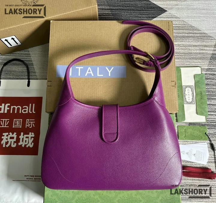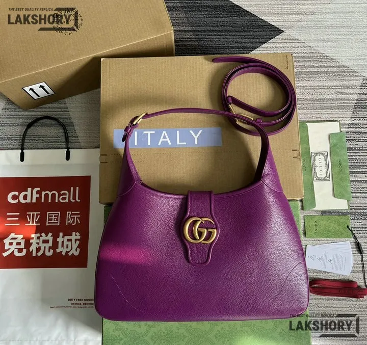 Gucci 1:1 Mirror Replica Goatskin Medium Aphrodite Bag Shine Purple 39CM/15.4IN