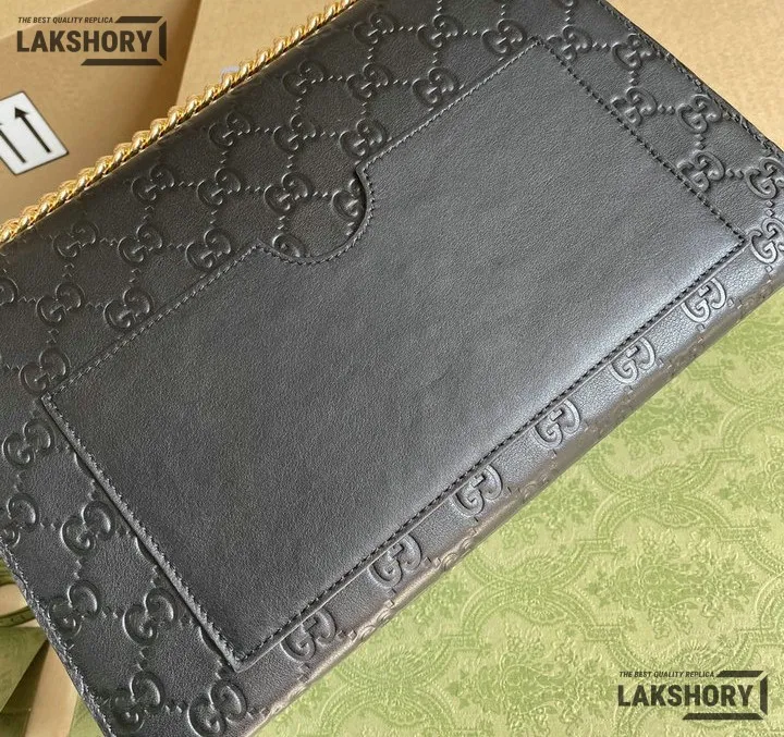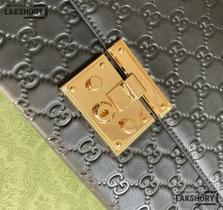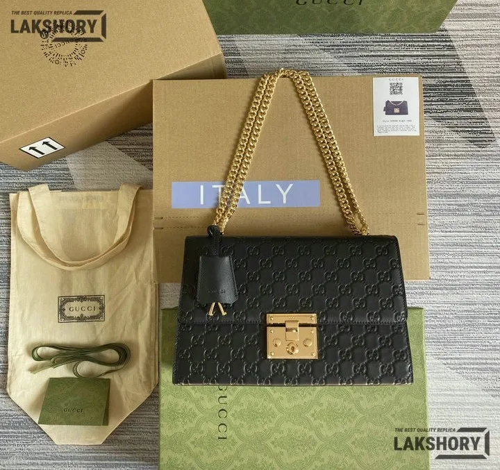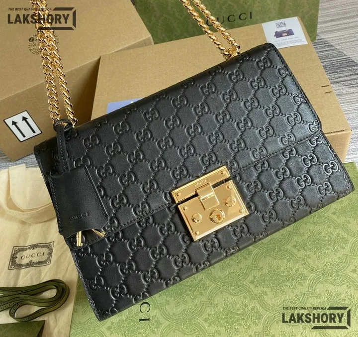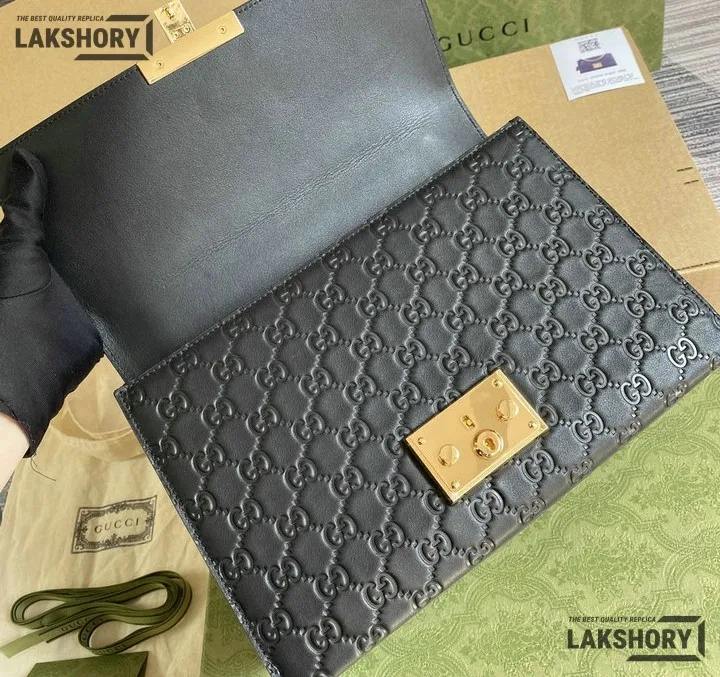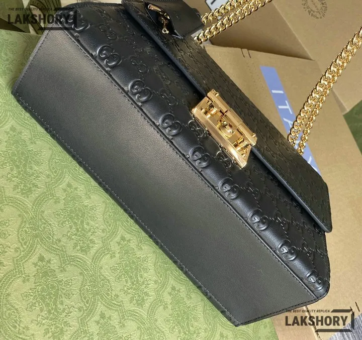 Gucci 1:1 Mirror Replica Guccissima Padlock Medium Padlock Bag Black 30CM/11.8IN