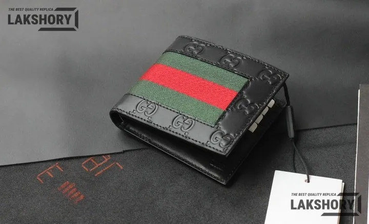 Gucci 1:1 Mirror Replica Guccissima Signature Web Bi-Fold Wallet 11CM/4.3IN