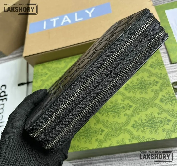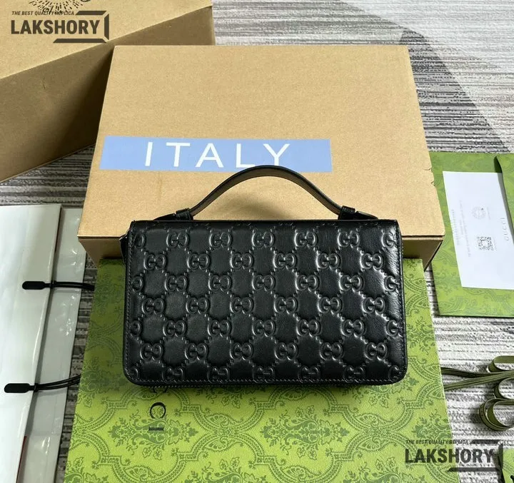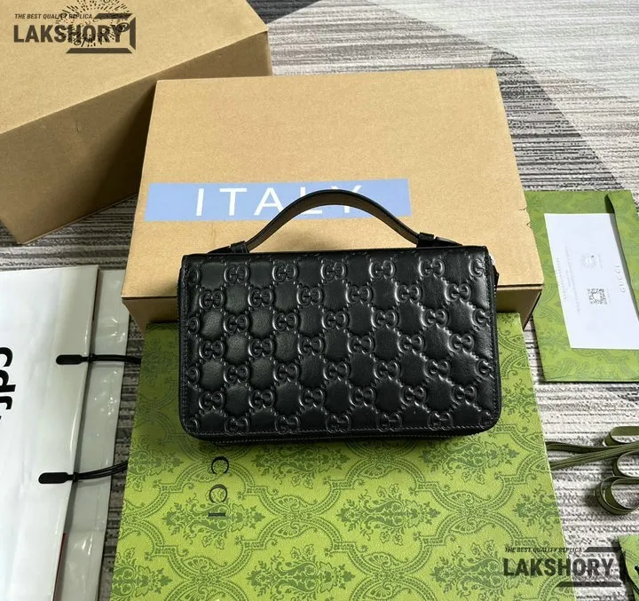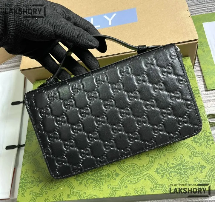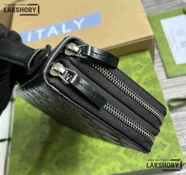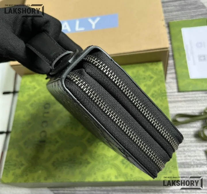 Gucci 1:1 Mirror Replica Guccissima Travel Document Case Black 21.5CM/8.5IN