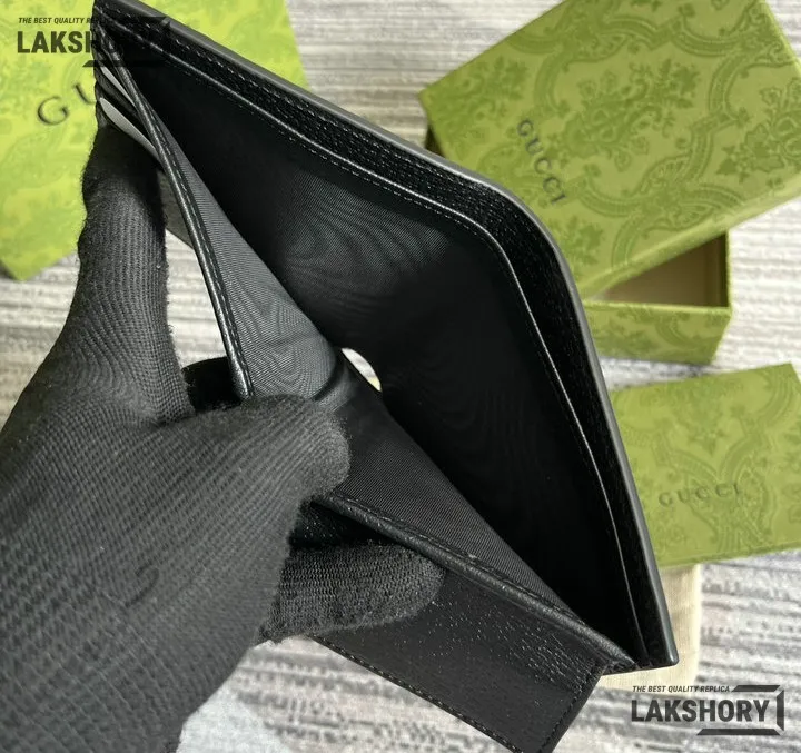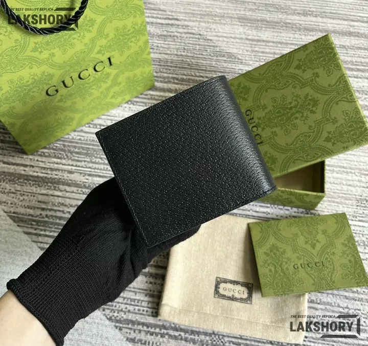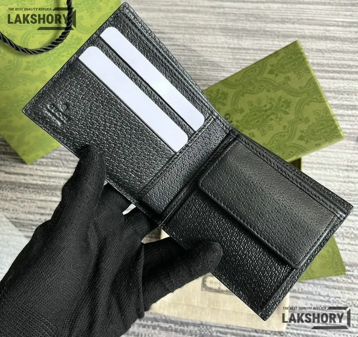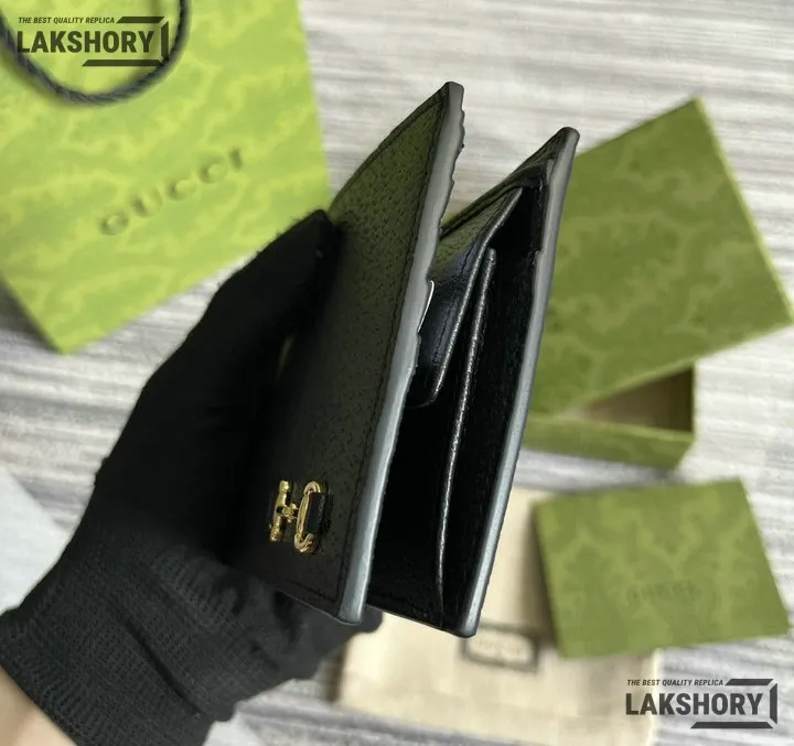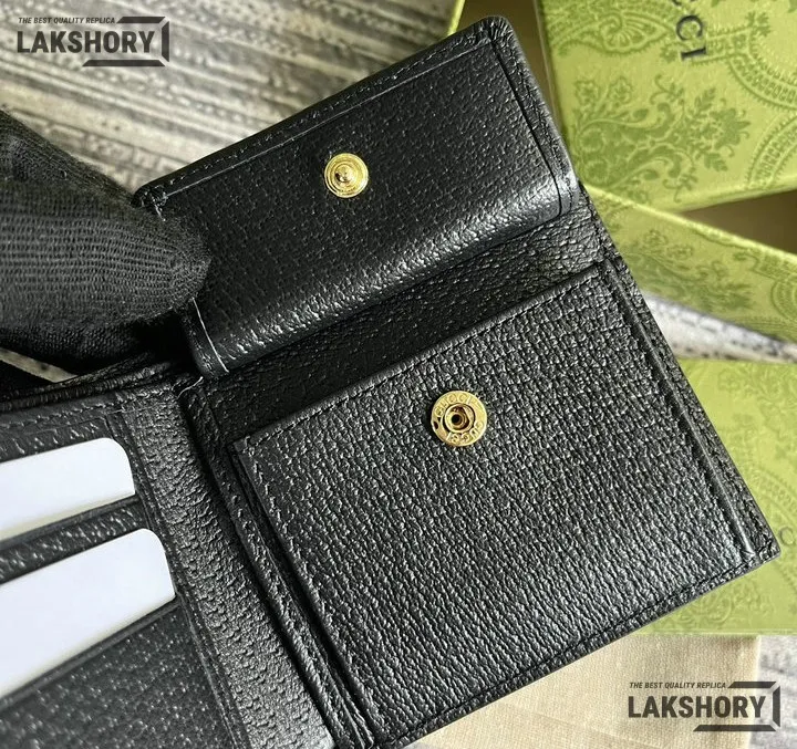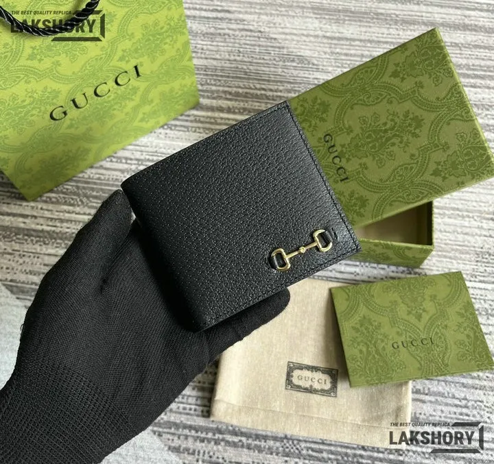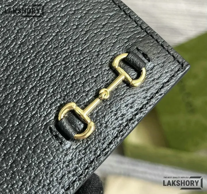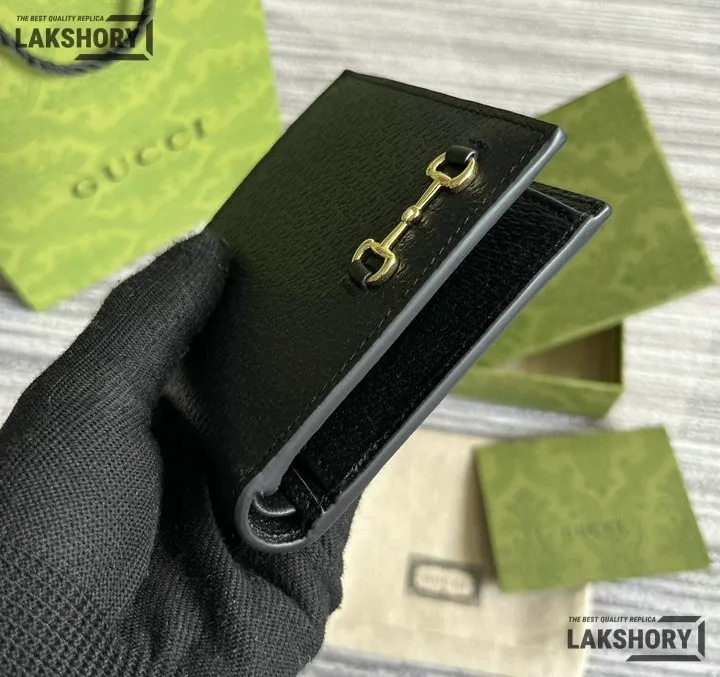 Gucci 1:1 Mirror Replica Horsebit 1955 Bi-Fold Wallet Black 7CM/2.8IN