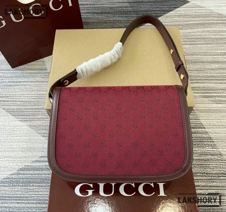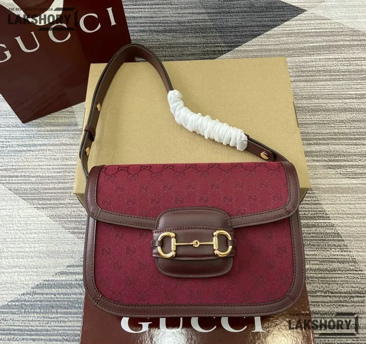 Gucci 1:1 Mirror Replica Horsebit 1955 Medium GG Canvas Burgundy 25CM/9.8IN