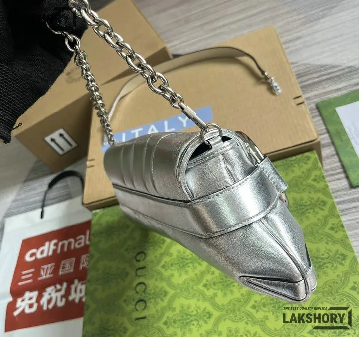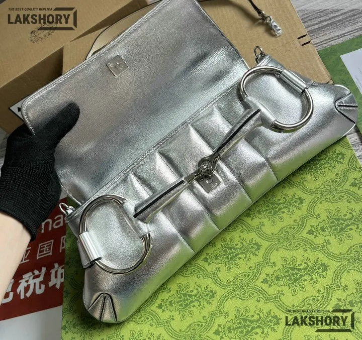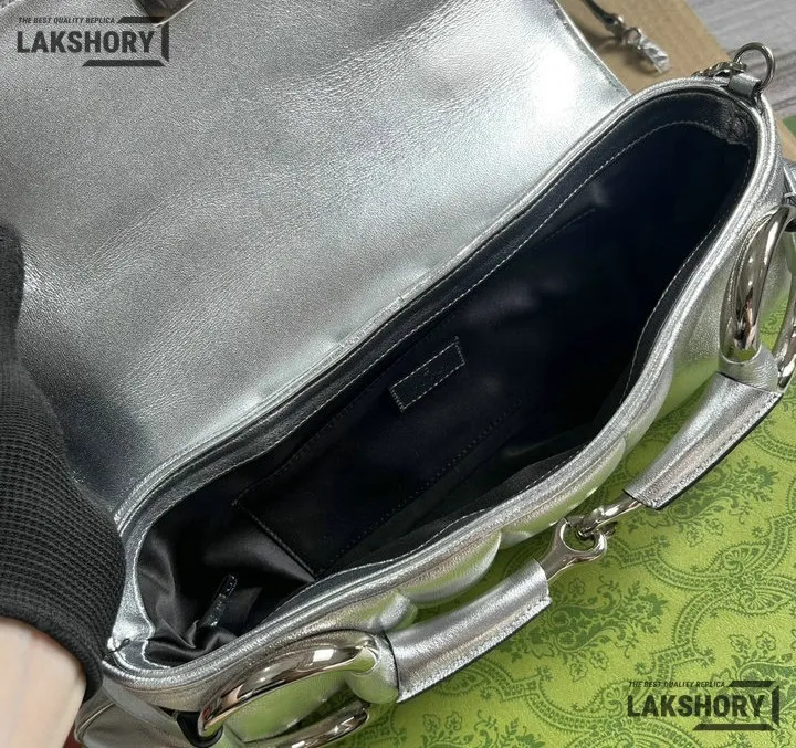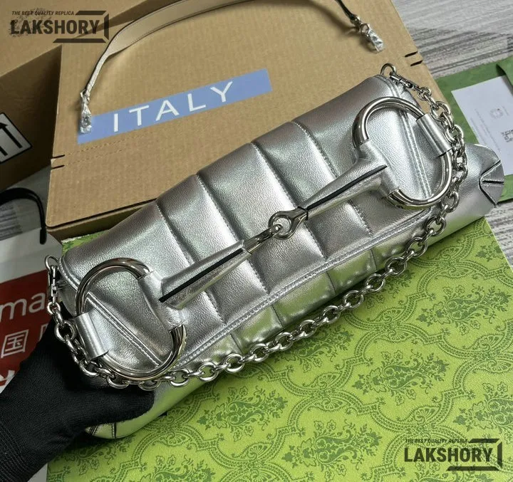 Gucci 1:1 Mirror Replica Horsebit Chain Medium Silver Metallic 38CM/15IN
