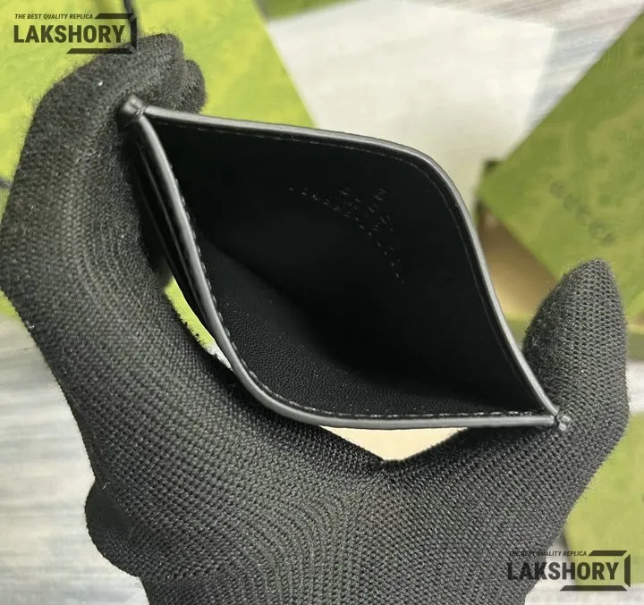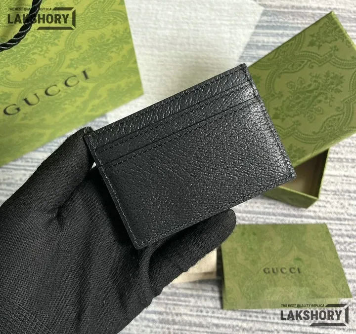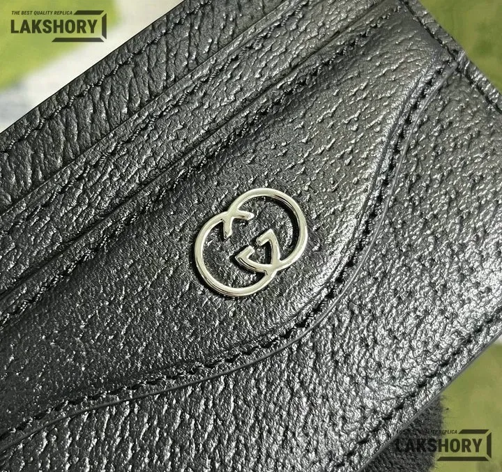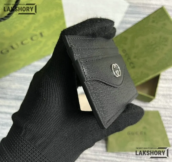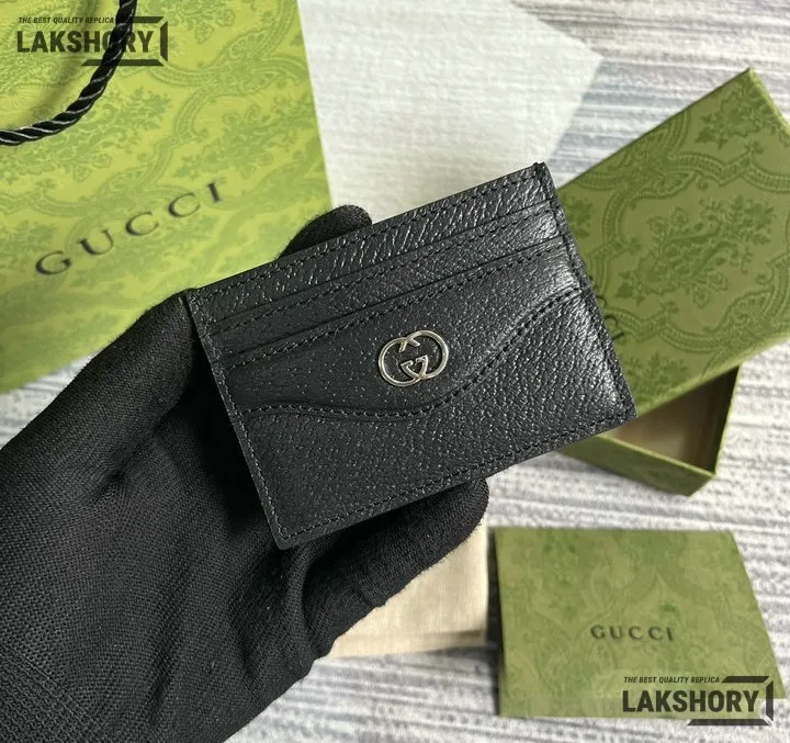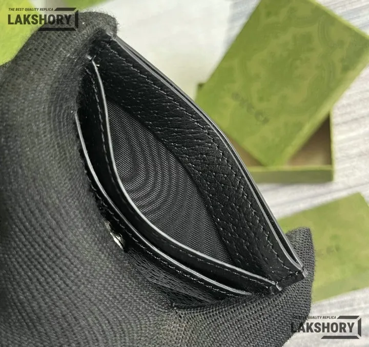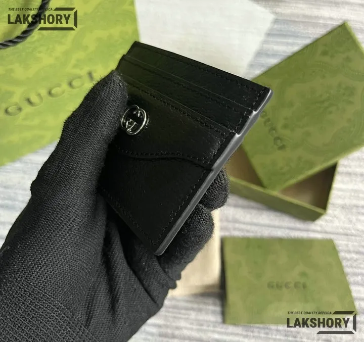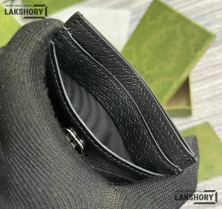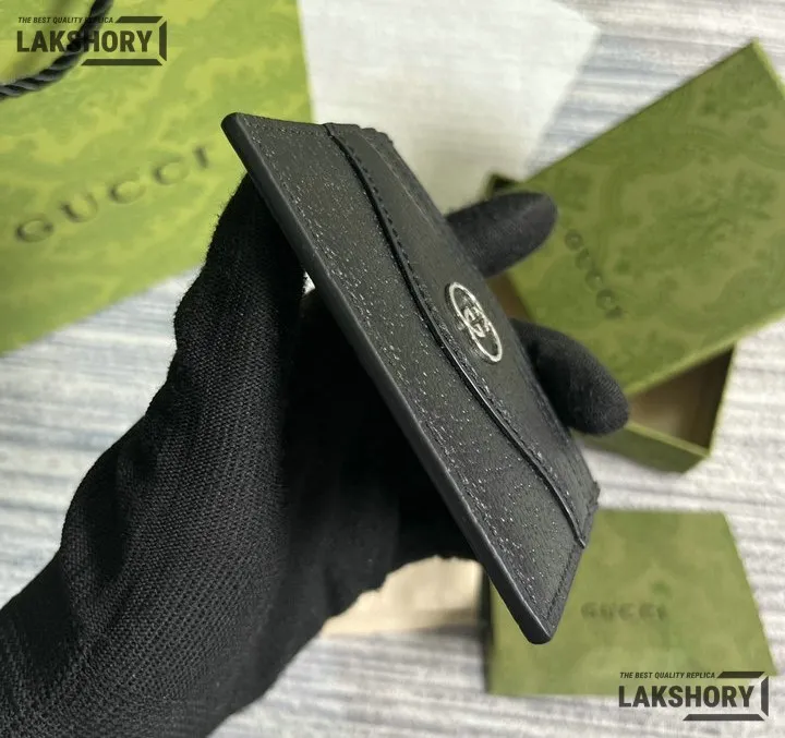 Gucci 1:1 Mirror Replica Interlocking G Cardholder Black Wallet 7CM/2.8IN