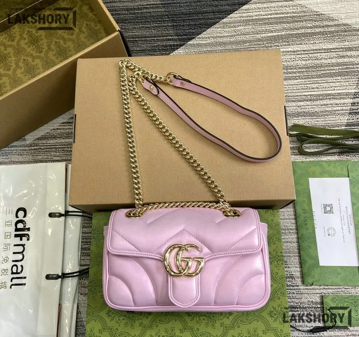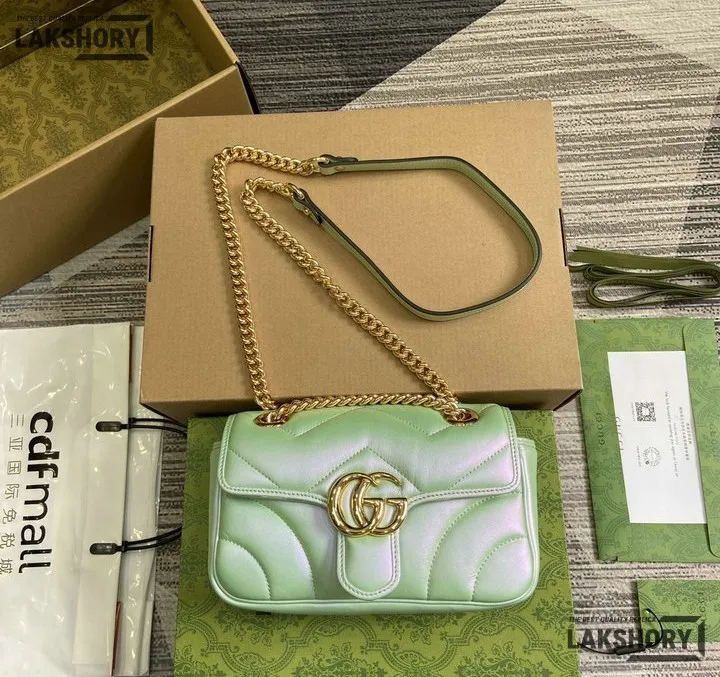Gucci 1:1 Mirror Replica Iridescent Nappa Matelasse Mini GG Marmont 23CM/9.1IN