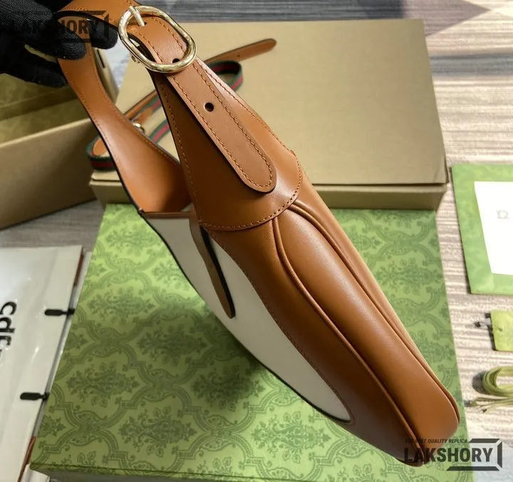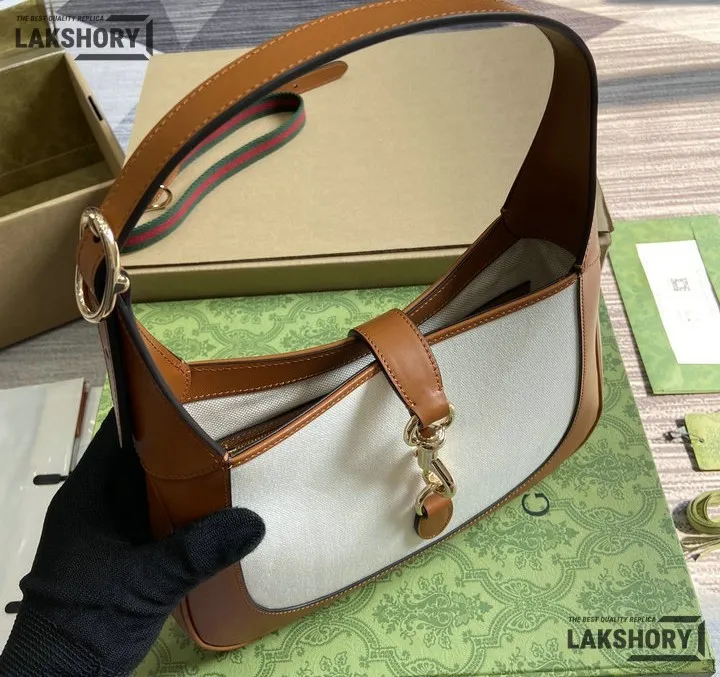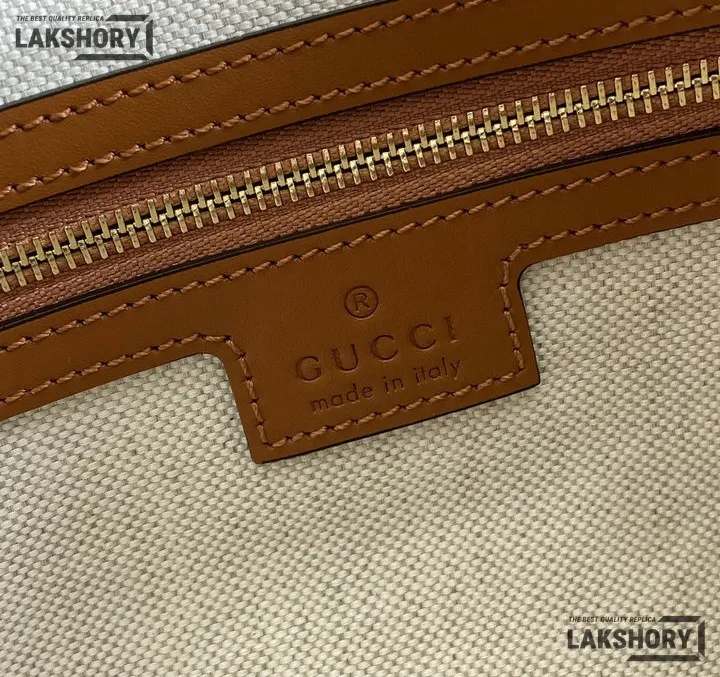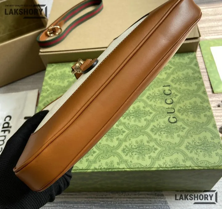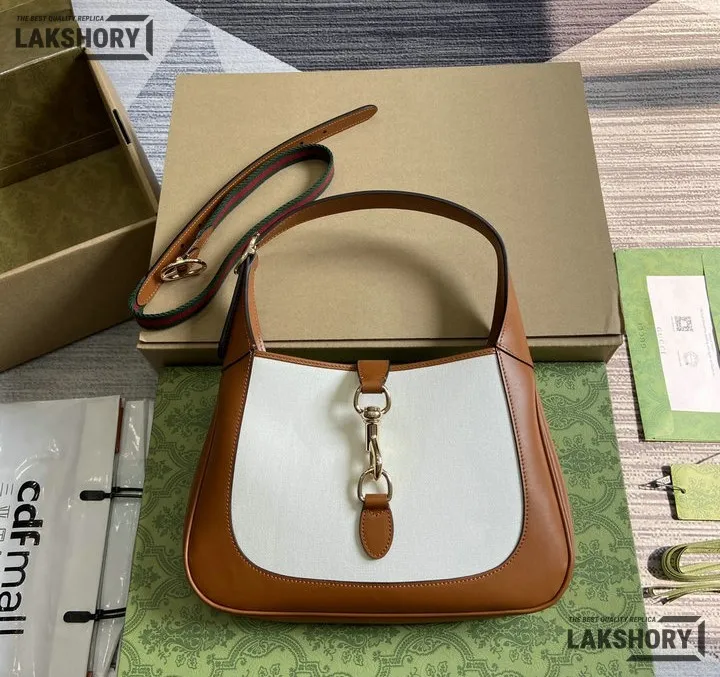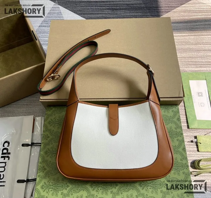 Gucci 1:1 Mirror Replica Jackie Medium Trimmed White Brown 27.5CM/10.8IN