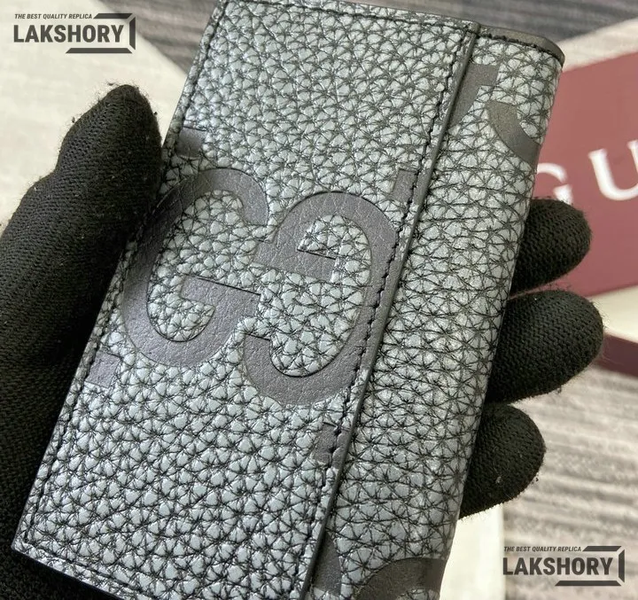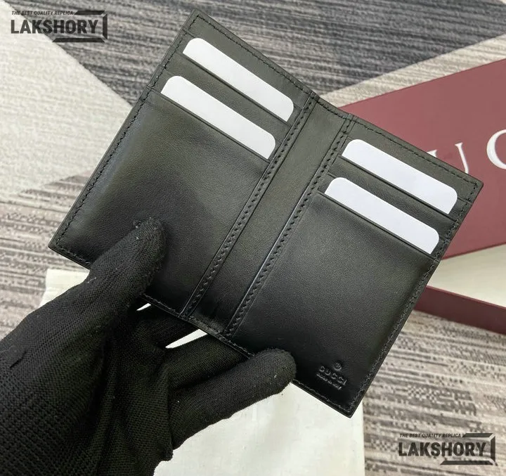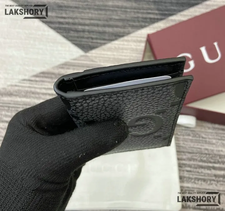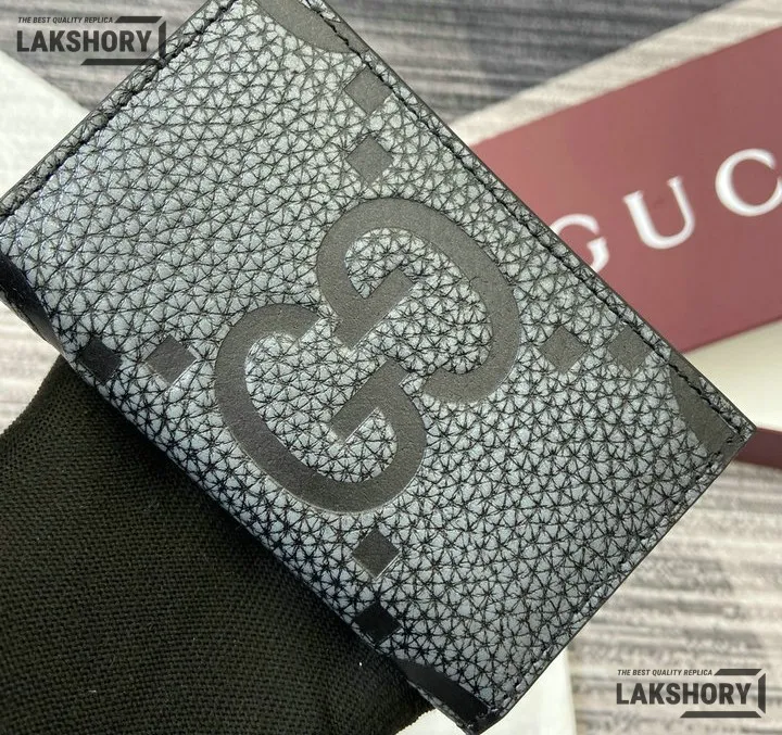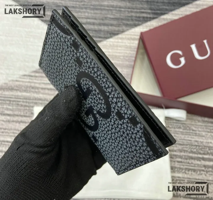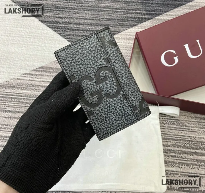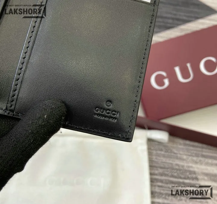 Gucci 1:1 Mirror Replica Jumbo GG Leather Card Case Black 7.5CM/3IN