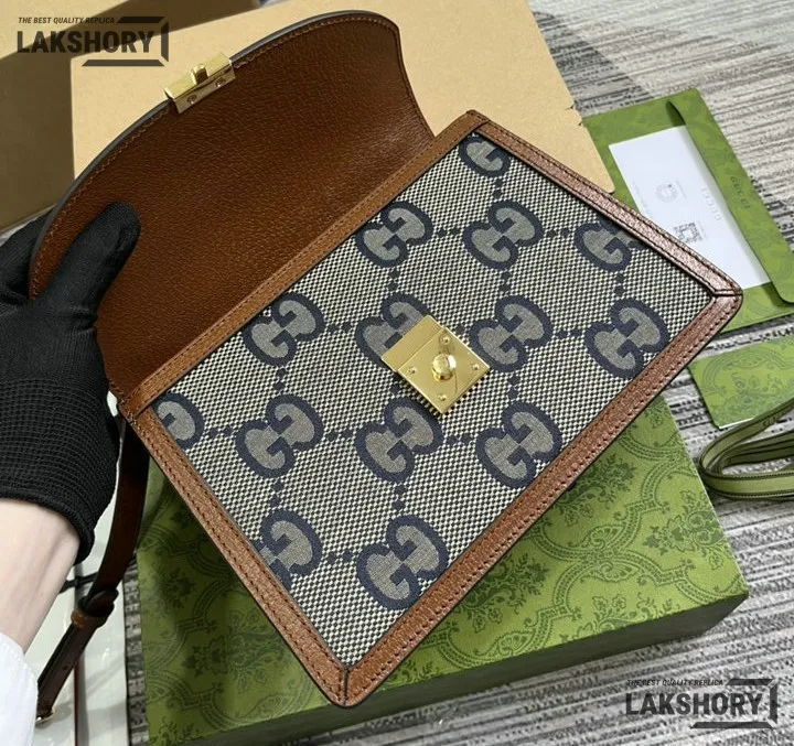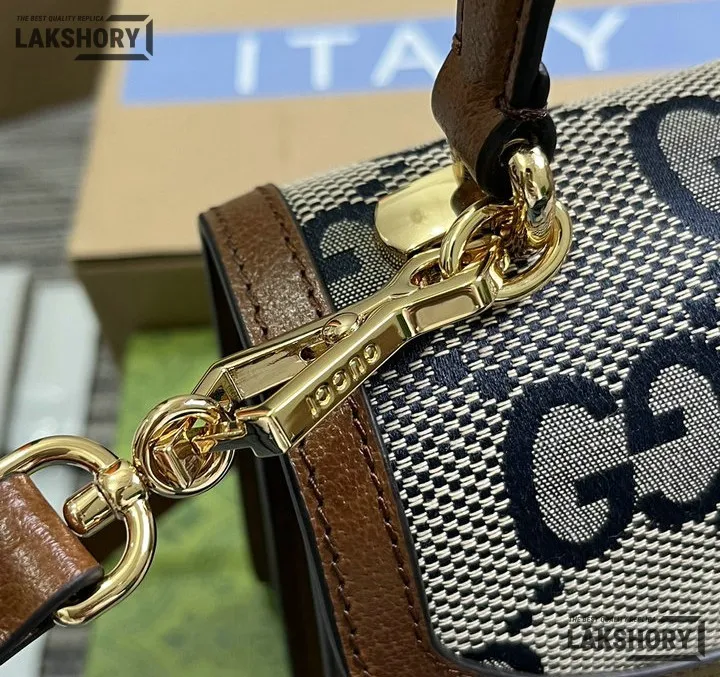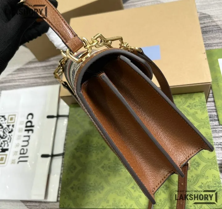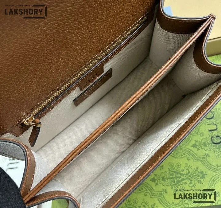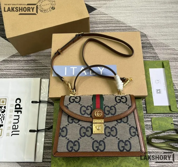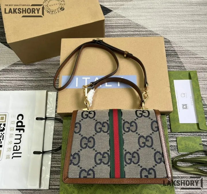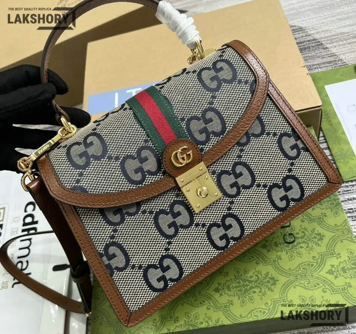 Gucci 1:1 Mirror Replica Jumbo GG Small Ophidia Top Handle Brown 25CM/9.8IN
