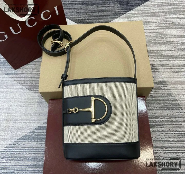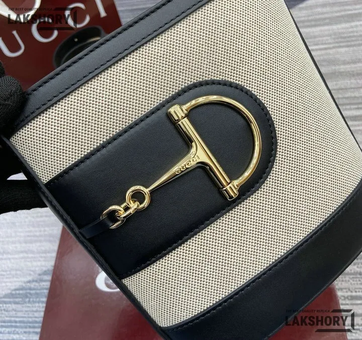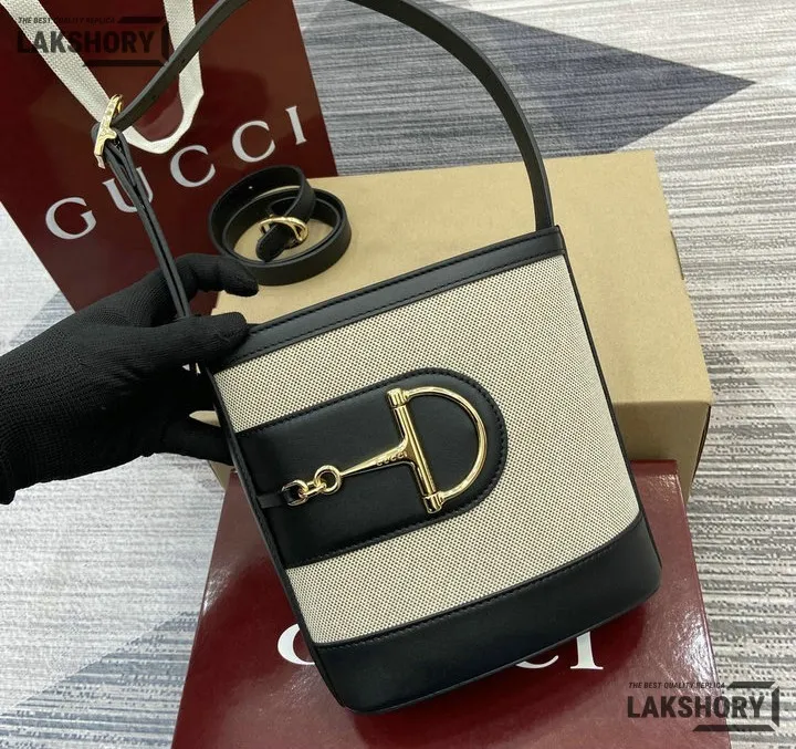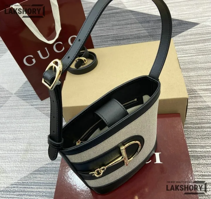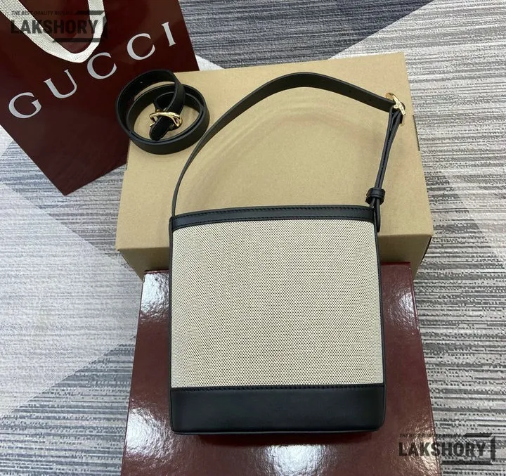 Gucci 1:1 Mirror Replica Leather 73 Small Black Grey Bucket Bag 20CM/7.9IN