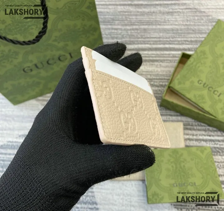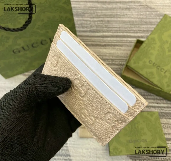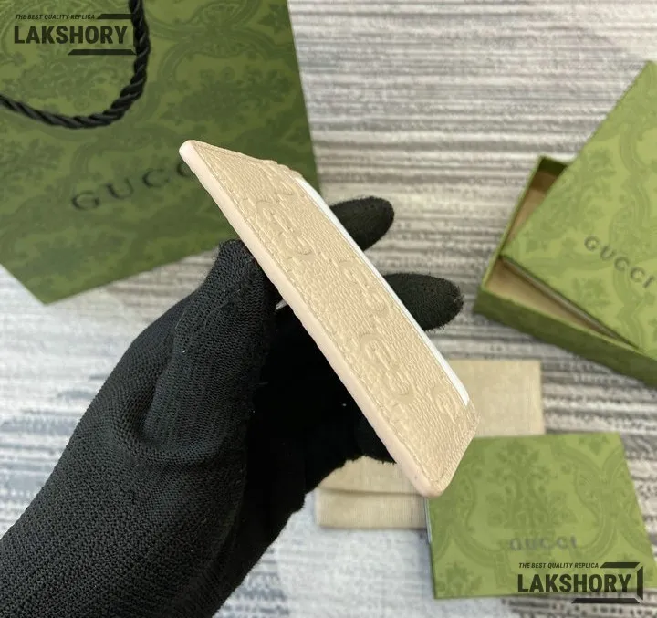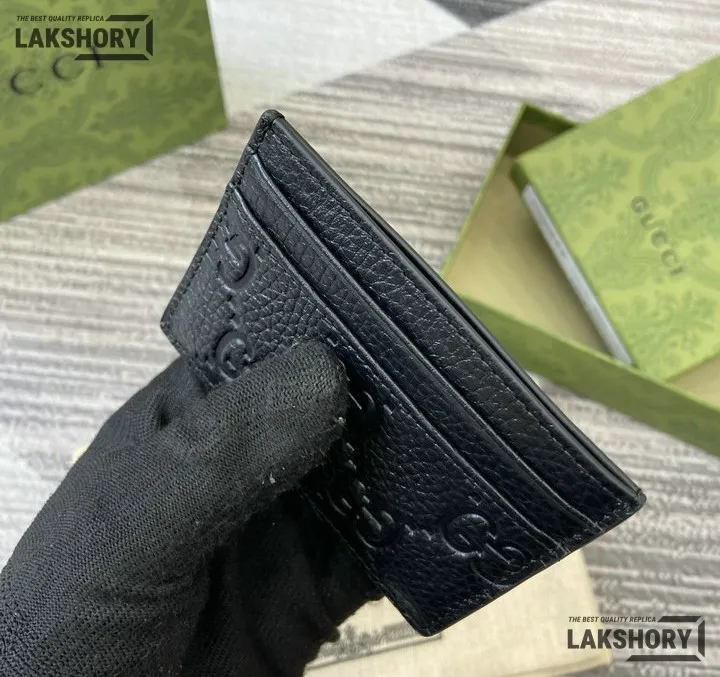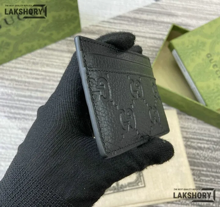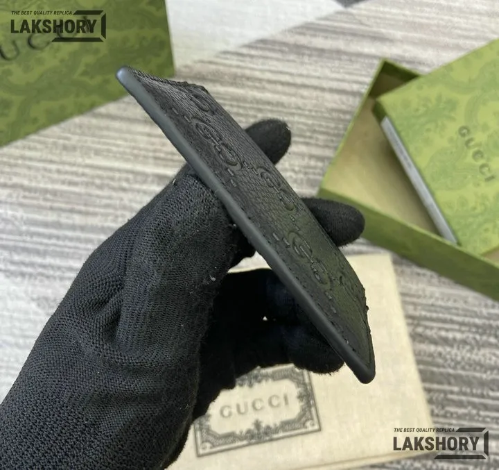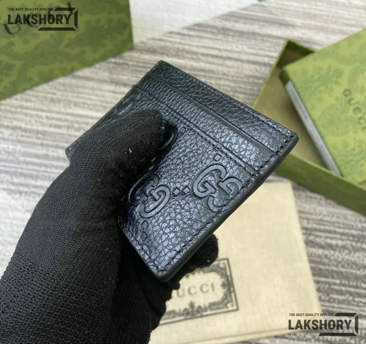 Gucci 1:1 Mirror Replica Leather GG Emblem Card Case 7CM/2.8IN