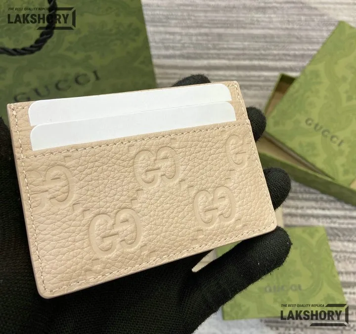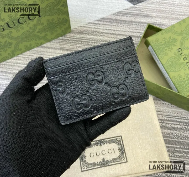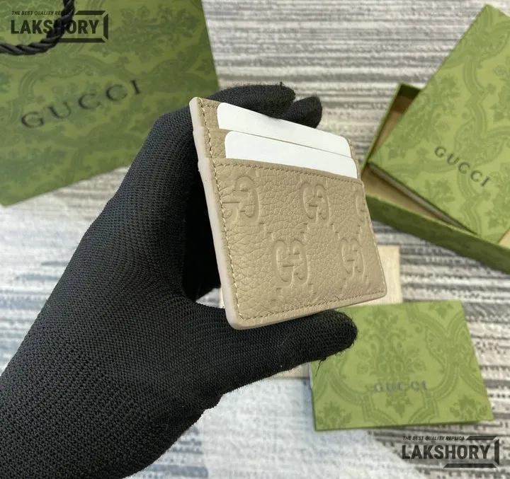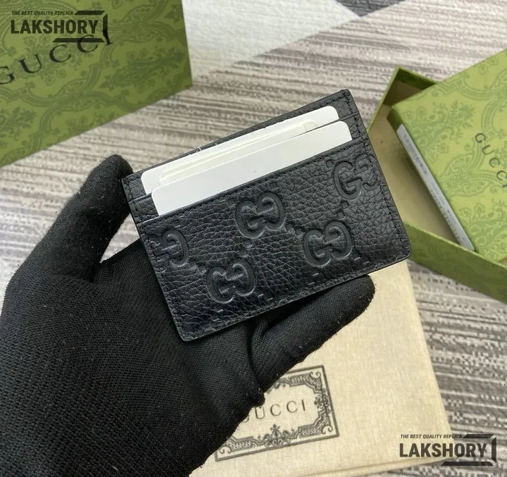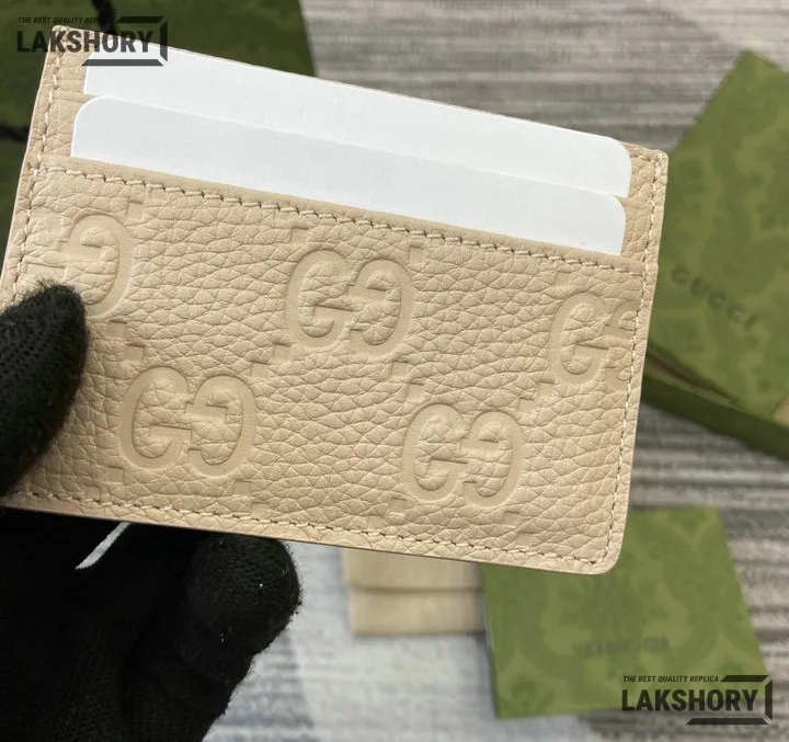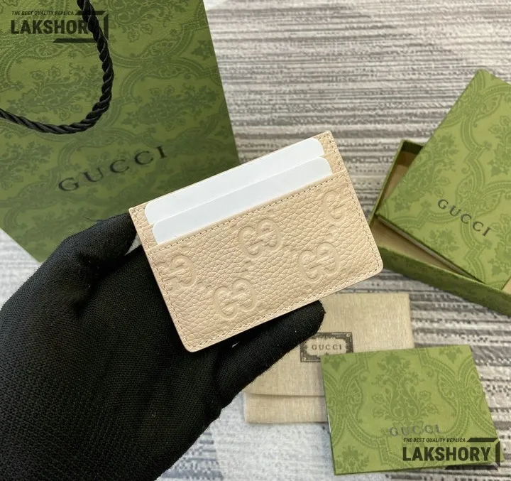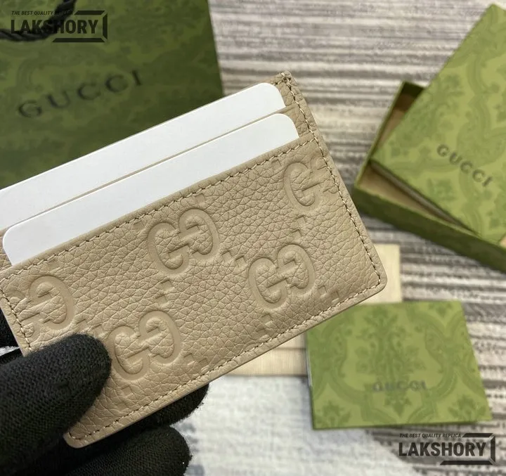 Gucci 1:1 Mirror Replica Leather GG Emblem Card Case 7CM/2.8IN