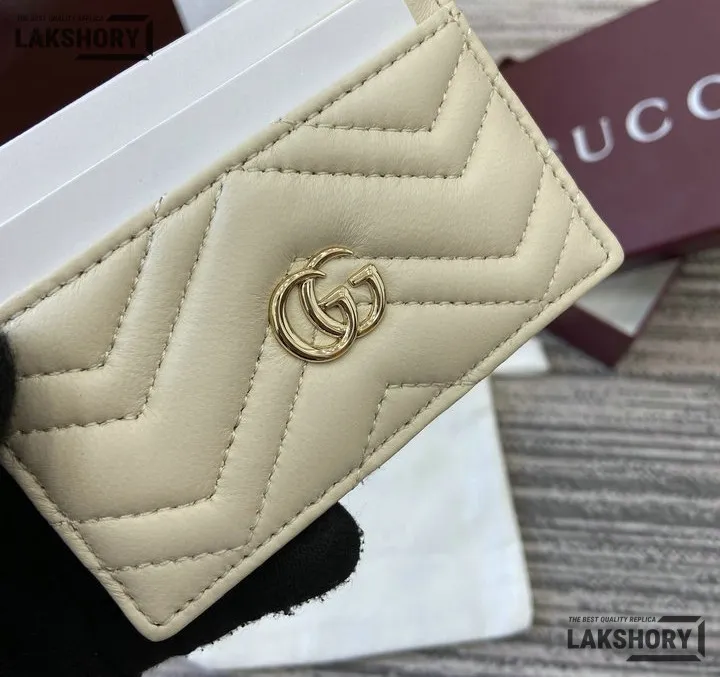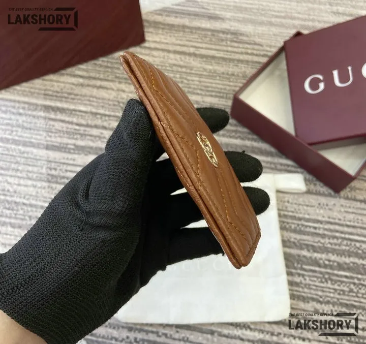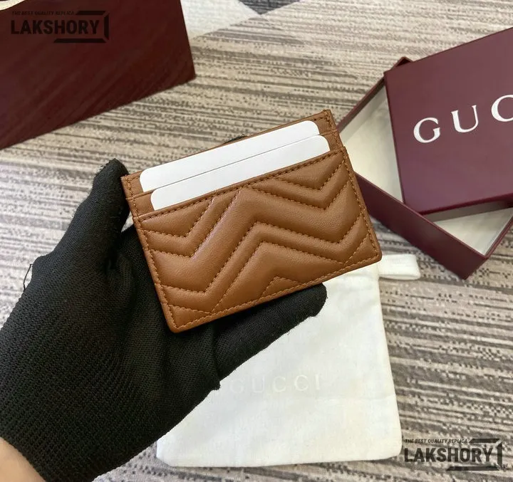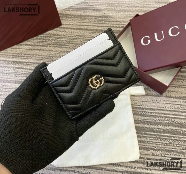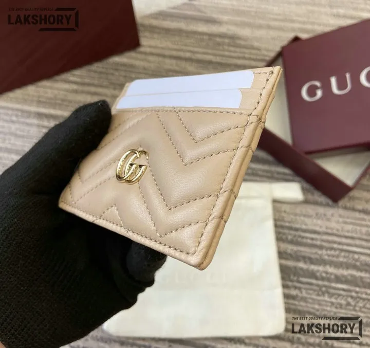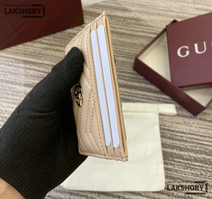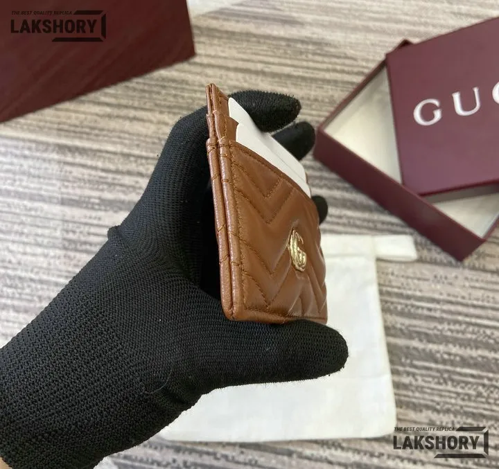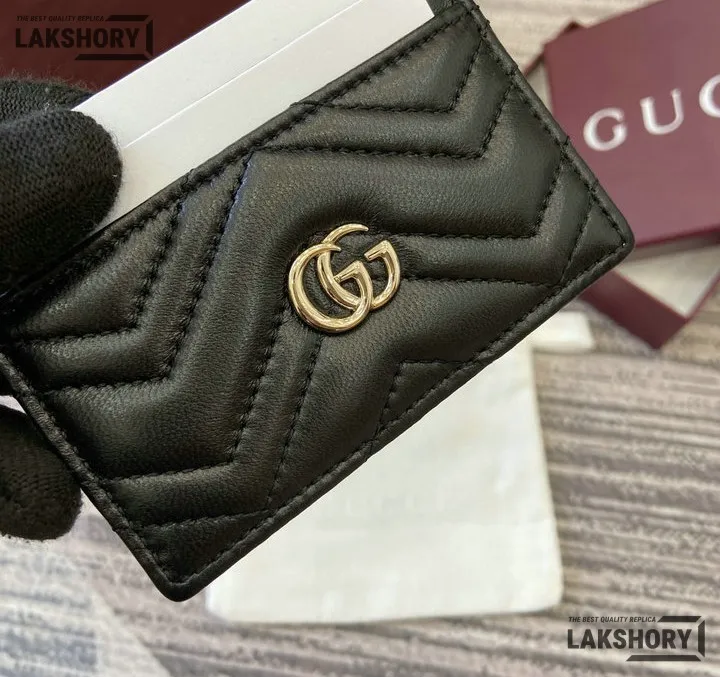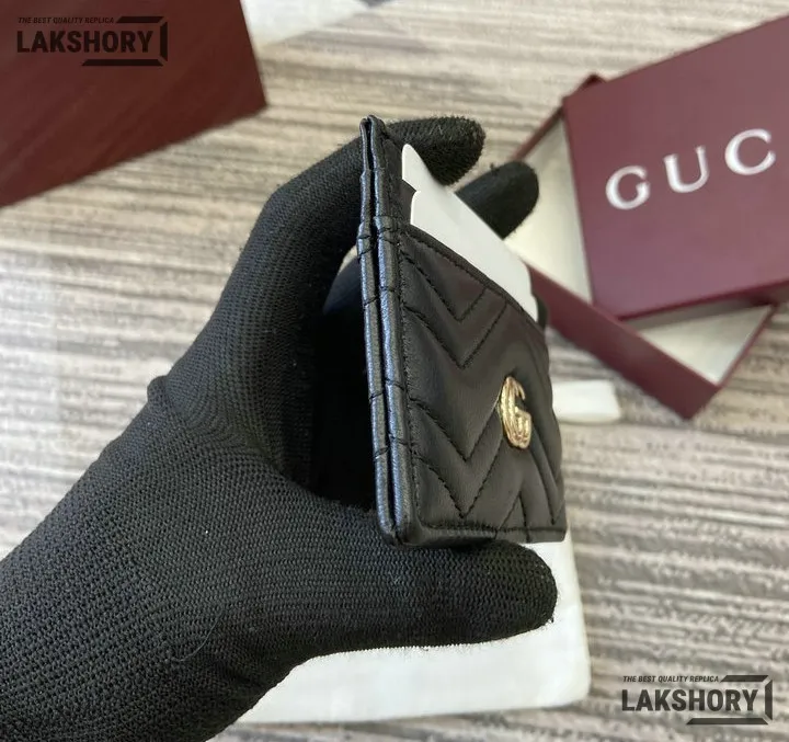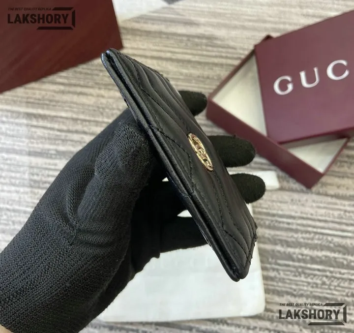 Gucci 1:1 Mirror Replica Leather GG Marmont Card Case 7CM/2.8IN