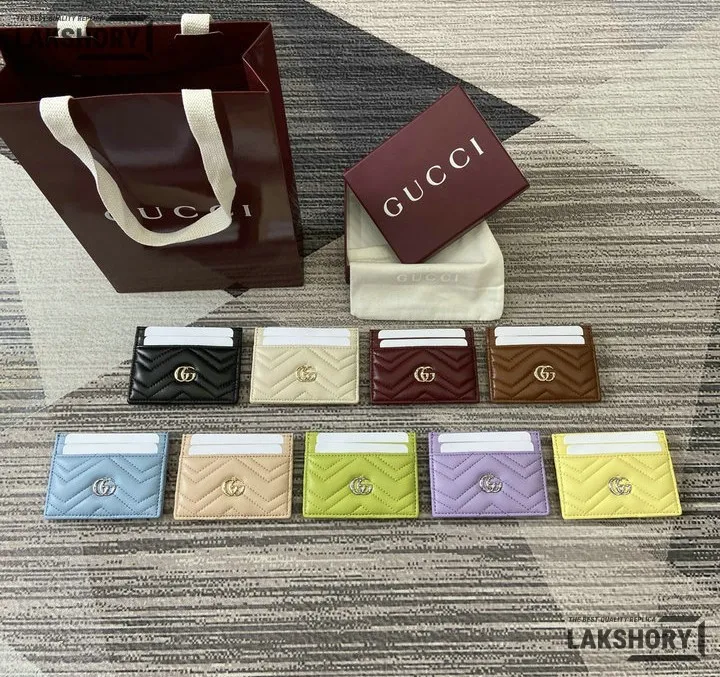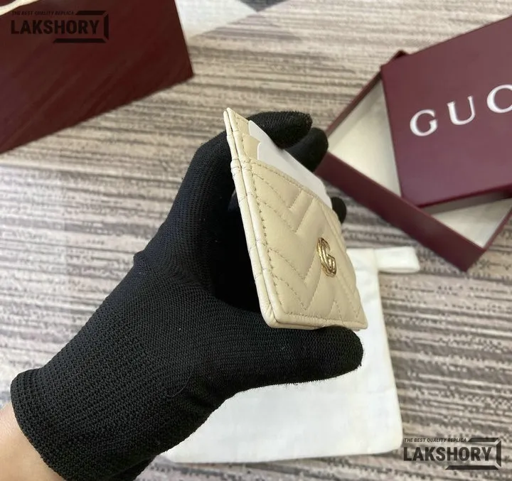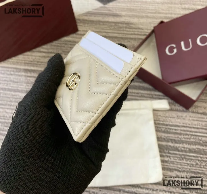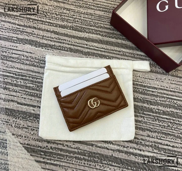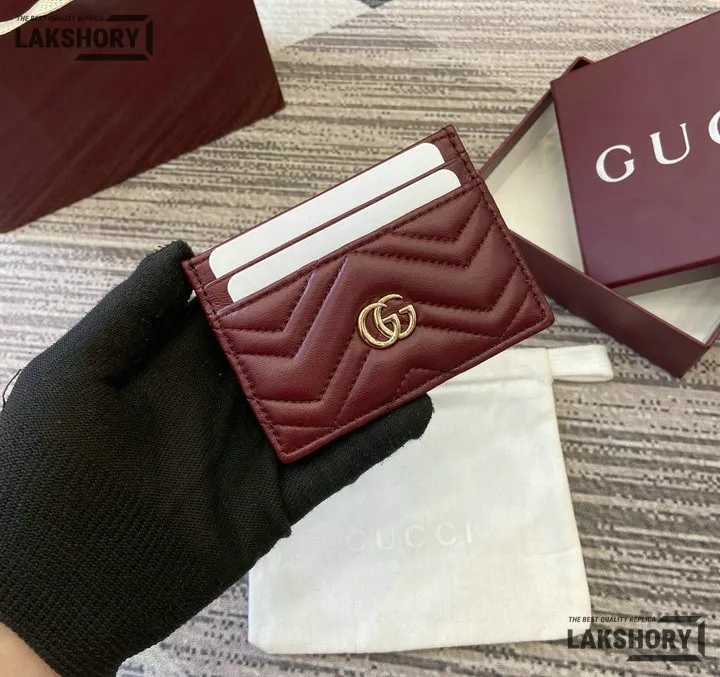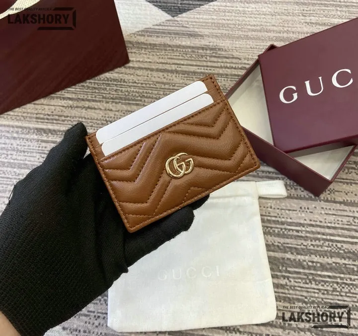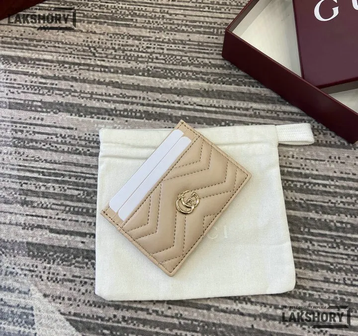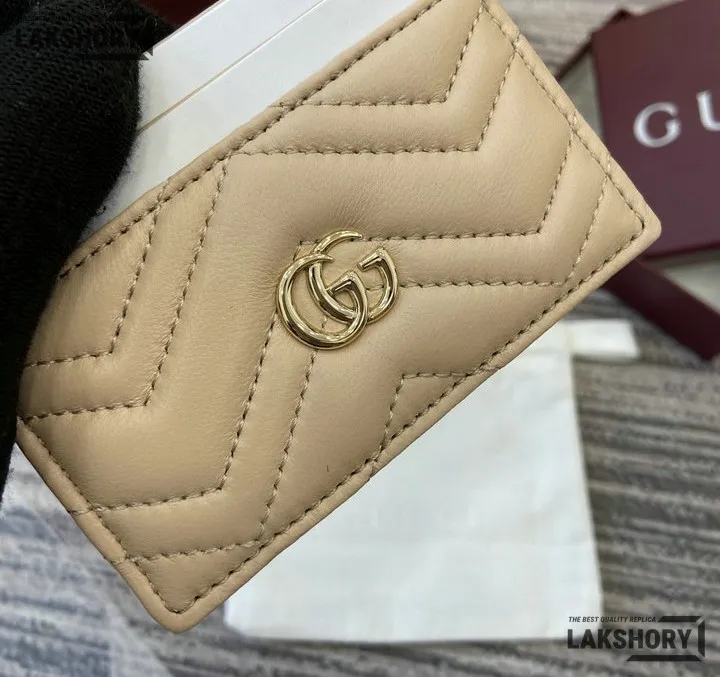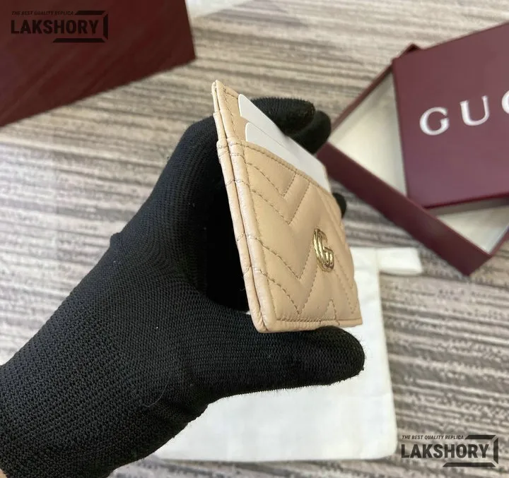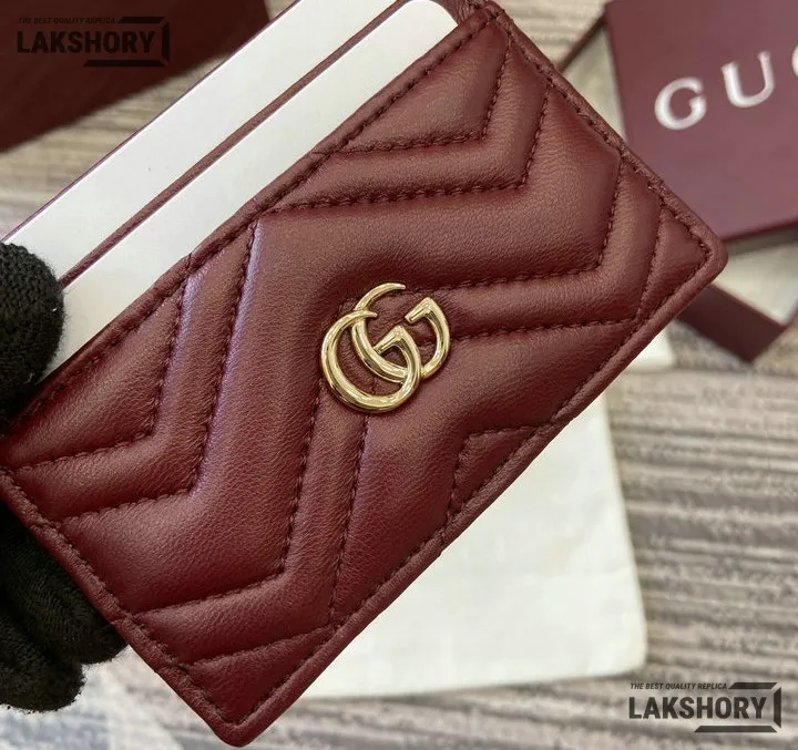 Gucci 1:1 Mirror Replica Leather GG Marmont Card Case 7CM/2.8IN