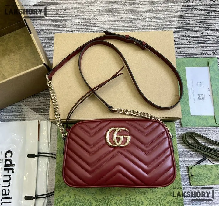 Gucci 1:1 Mirror Replica Leather GG Marmont Small Camera Bag 24CM/9.4IN