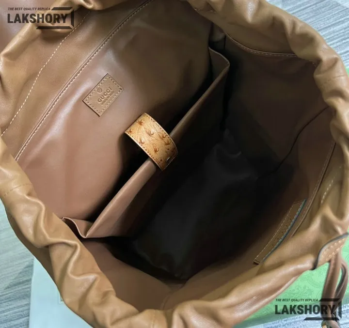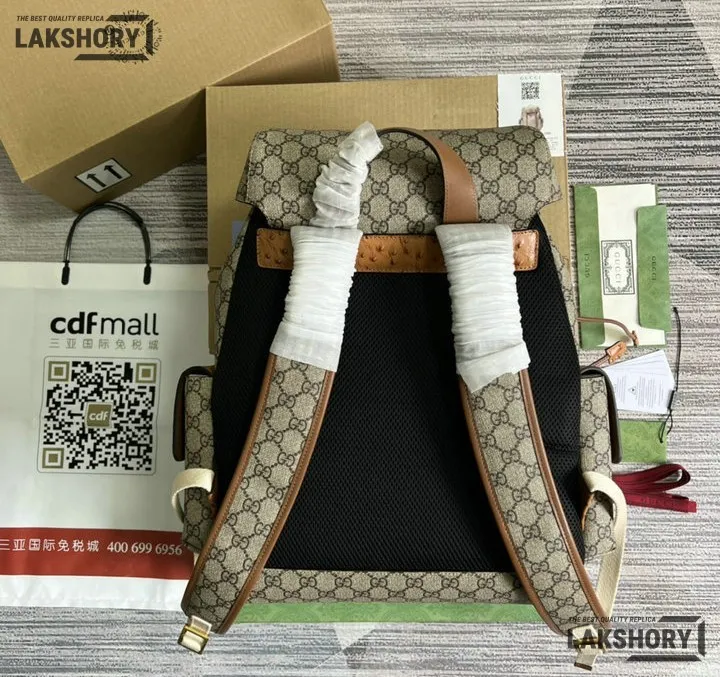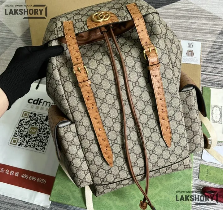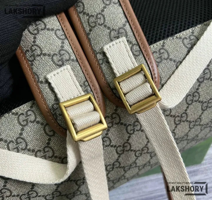 Gucci 1:1 Mirror Replica Leather Trim GG Beige & Brown Backpack 40CM/15.7IN