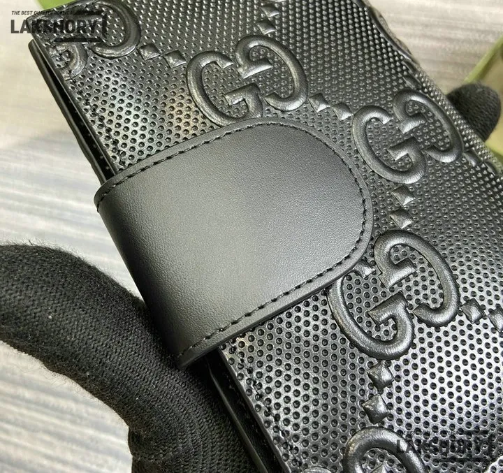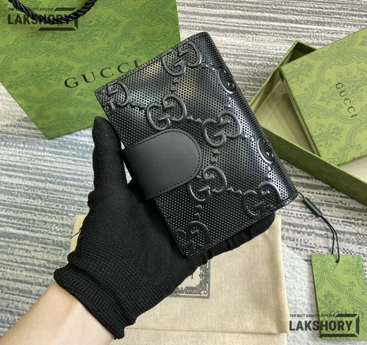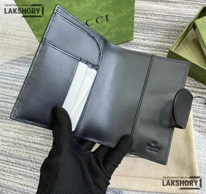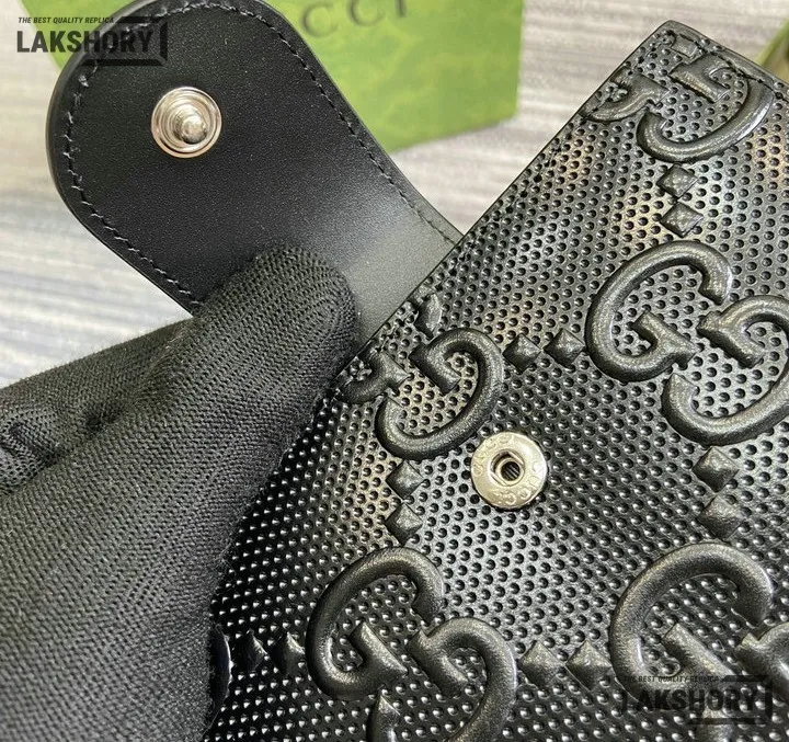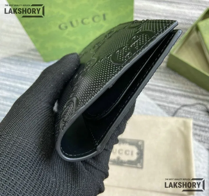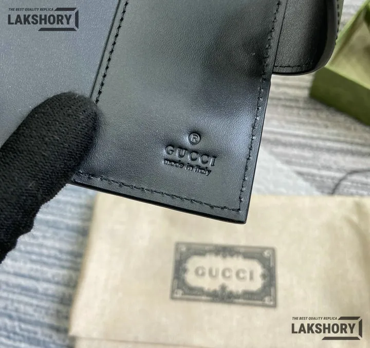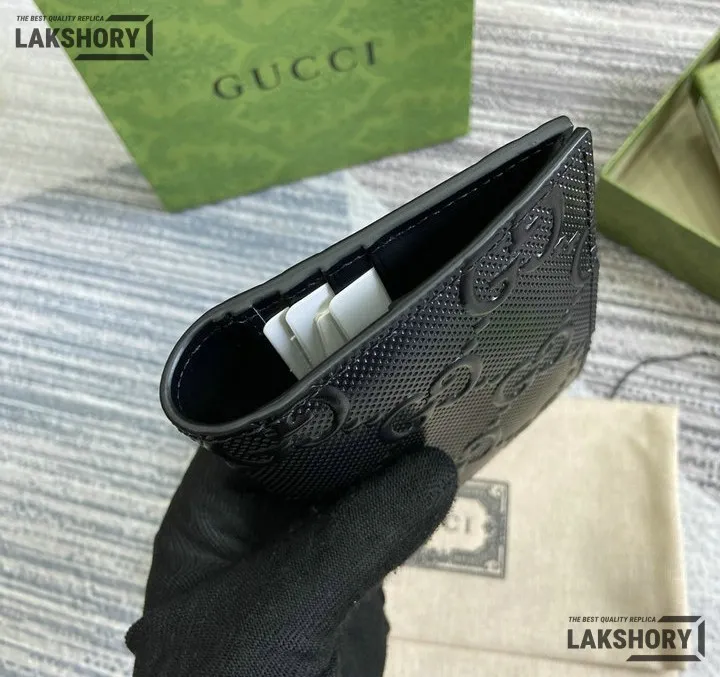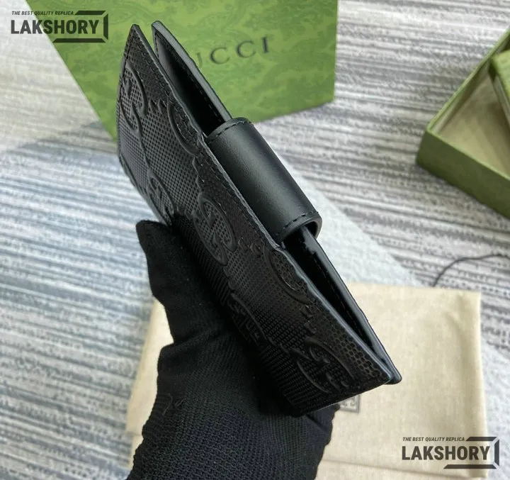 Gucci 1:1 Mirror Replica Logo Debossed Leather Wallet Black 10.5CM/4.1IN