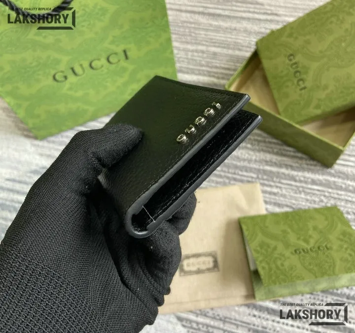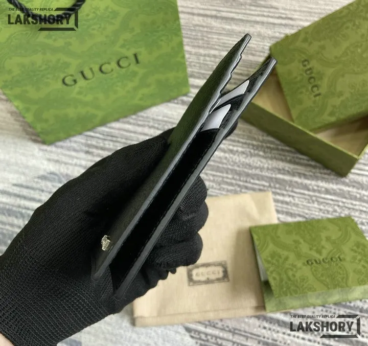 Gucci 1:1 Mirror Replica Long Card Case w/ Gucci logo Black 7.5CM/3IN