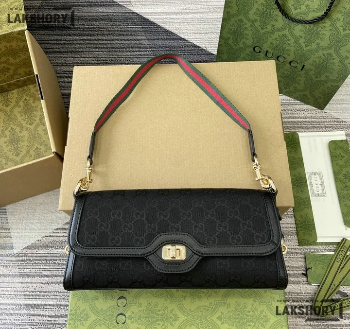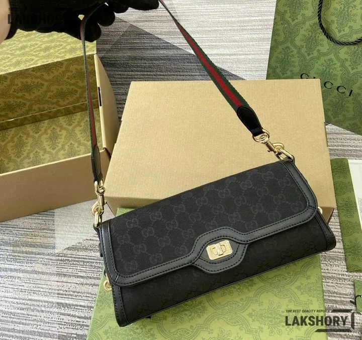Gucci 1:1 Mirror Replica Luce Small Shoulder Bag Black 27.5CM/10.8IN