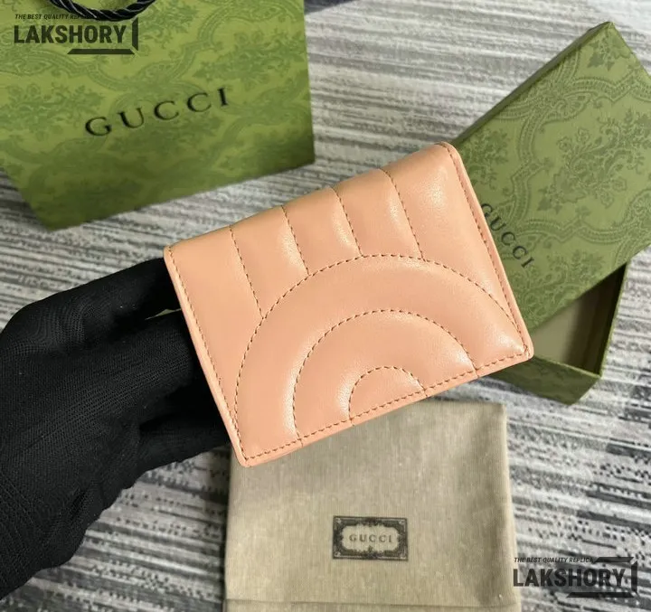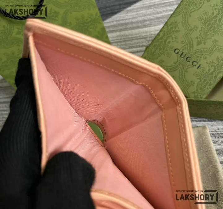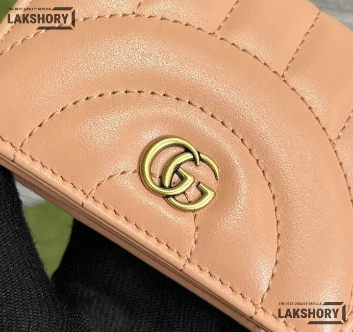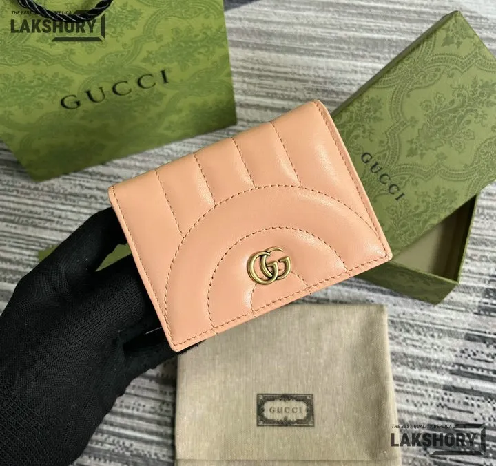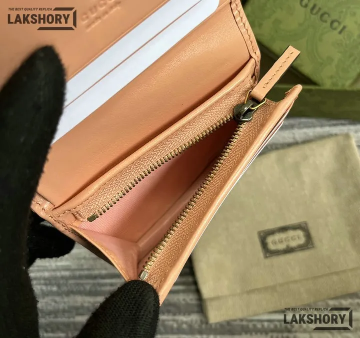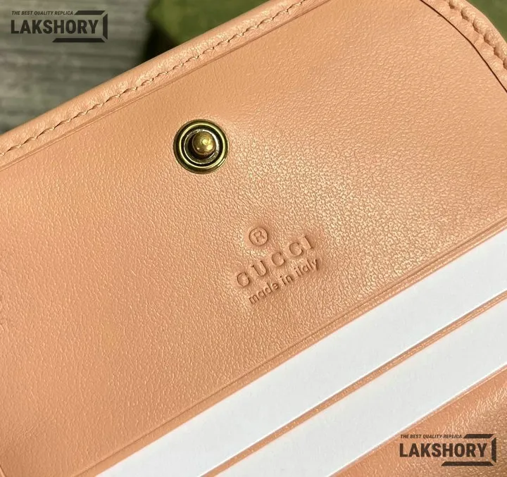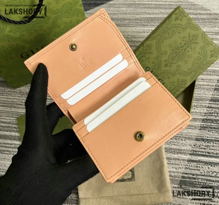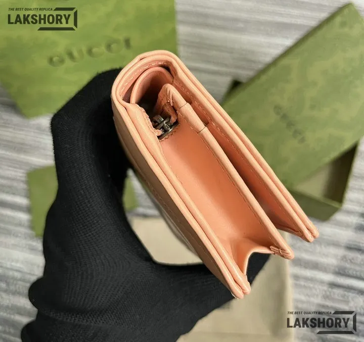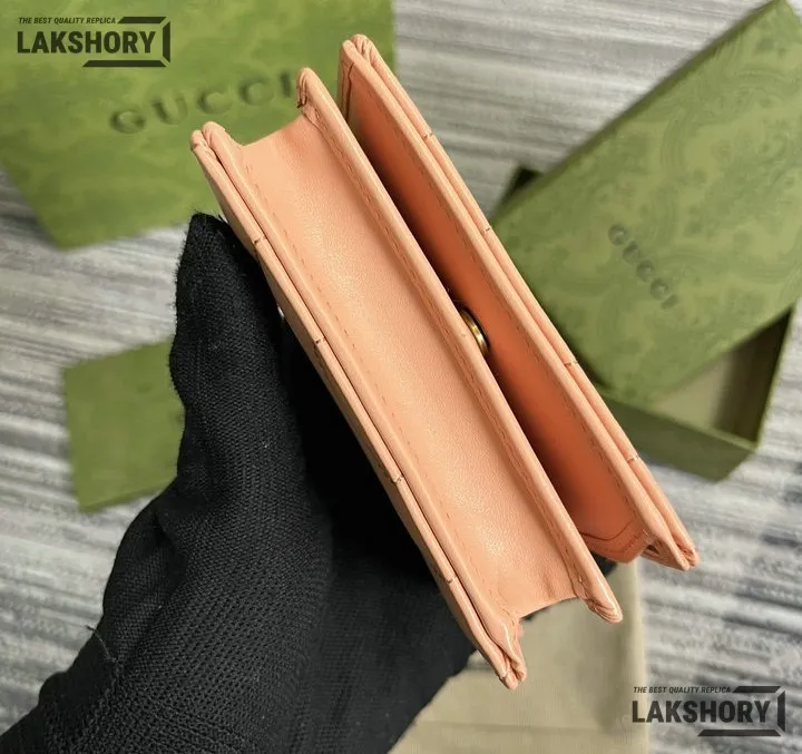 Gucci 1:1 Mirror Replica Matelassé 2-Tier Card Case Wallet Peach 11CM/4.3IN