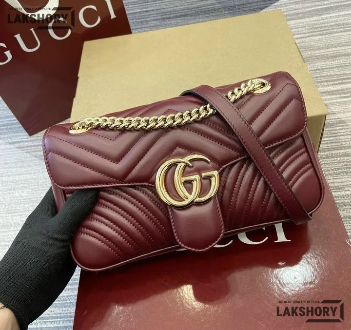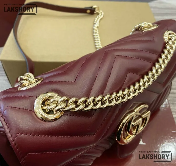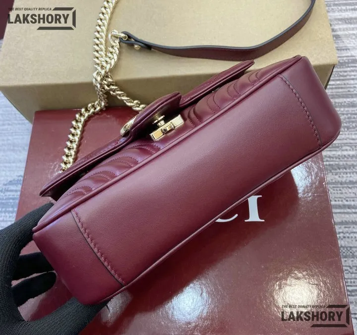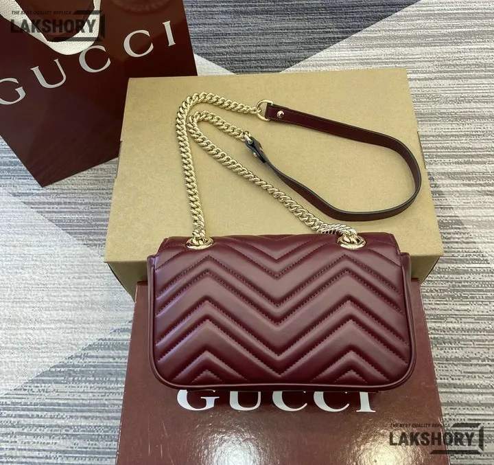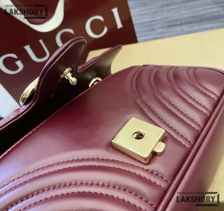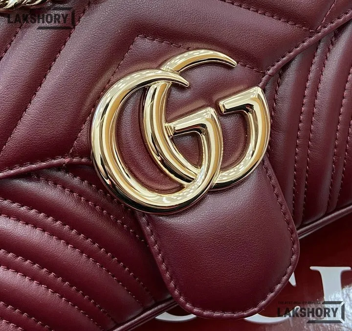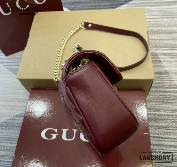 Gucci 1:1 Mirror Replica Matelasse Calfskin GG Marmont Rosso Red
