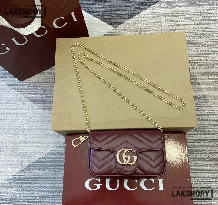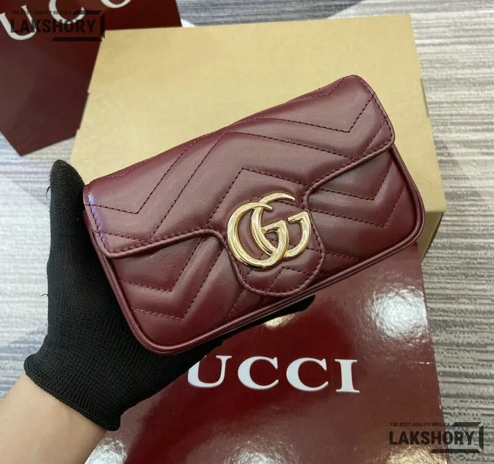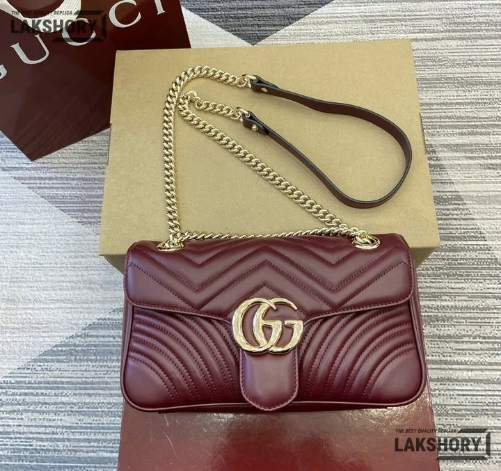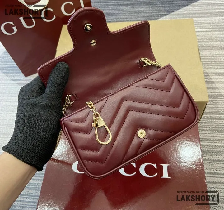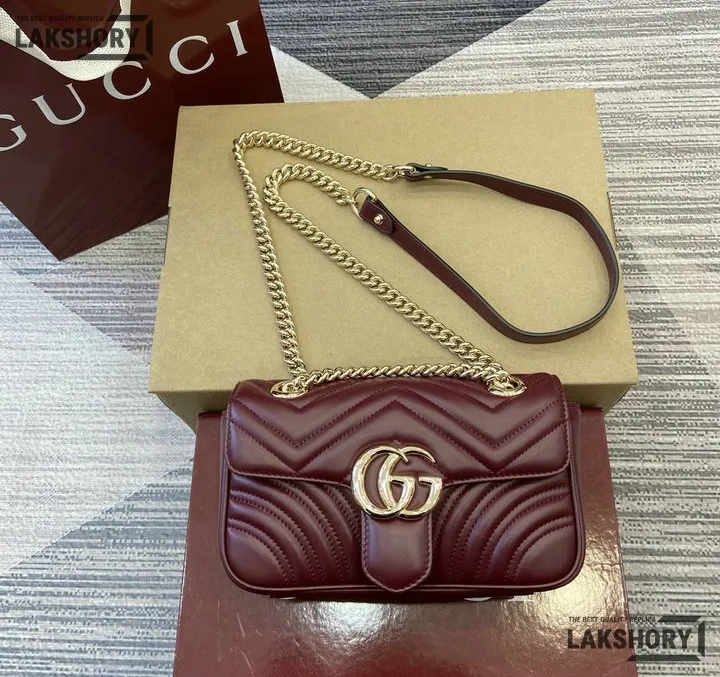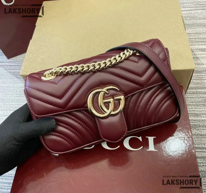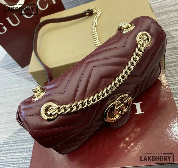 Gucci 1:1 Mirror Replica Matelasse Calfskin GG Marmont Rosso Red