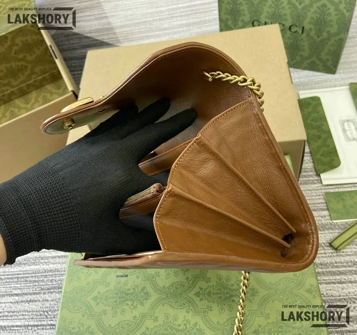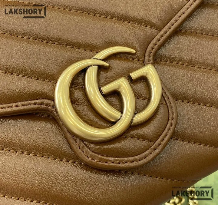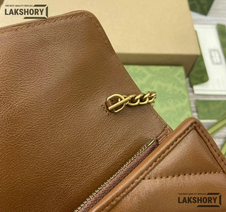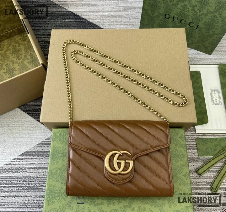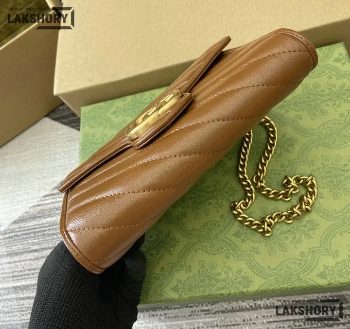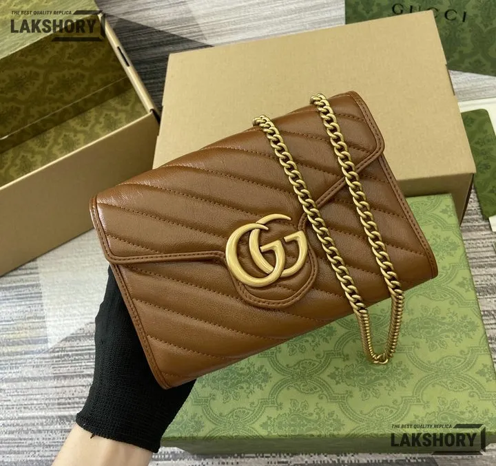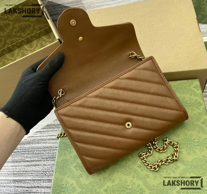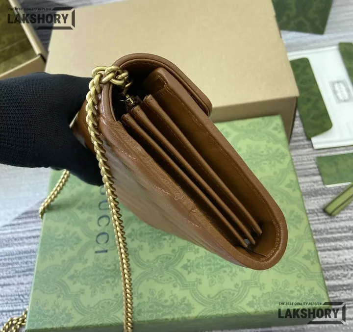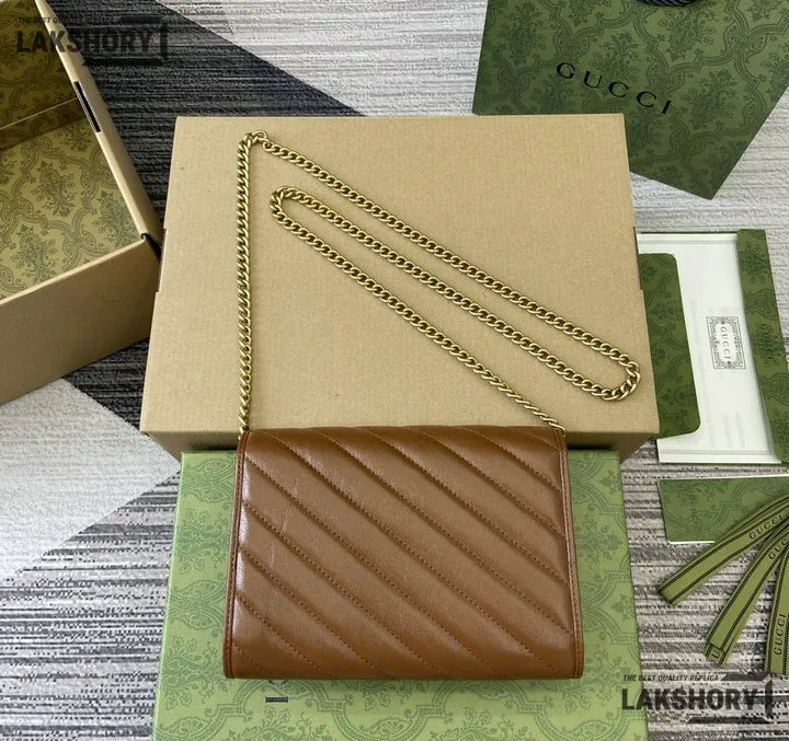Gucci 1:1 Mirror Replica Matelasse Diagonal GG Marmont Wallet on Chain 20CM/7.9IN